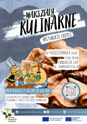 Miejscowość: Leszno Miejsce: Fundacja CAT, ul. Dąbrowskiego 3B Data rozpoczęcia: 13.10.2025 17:00:00 Data zakończenia: 13.10.2025 18:00:00 Organizator: Fundacja CAT Opis wydarzenia: Wiesz, co jadłby Asteriks i Obeliks, gdyby nie dziki? Crepesy z Bretanii – i to nie byle jakie, tylko takie jak u Bailey’a! 13 października zapraszamy wszystkie młodych Galów (7–11 lat) na kulinarną misję pełną zabawy, smaku i pachnących naleśników. Bailey i Egli z Albanii pokażą, jak przygotować oryginalne bretońskie crepesy. Cienkie, złociste, przepyszne. Nawet Rzymianie by się skusili! Data: 13 października 2025 Godzina: 17:00–18:00 Miejsce: Fundacja CAT, ul. Dąbrowskiego 3B Wiek uczestników: 7–11 lat Koszt: 35 zł za osobę Grupa: max 10 osób Obowiązują zapisy przez formularz online https://forms.gle/UXsAY5HPydmqbz1U7 Nie gwarantujemy magicznego napoju nadludzkiej siły, ale gwarantujemy magiczne smaki i spotkanie z kulturą! Działania wolontariuszy międzynarodowych w ramach Europejskiego Korpusu Solidarności @europejskikorpussolidarnosci finansowanego przez UE @europeancommission |