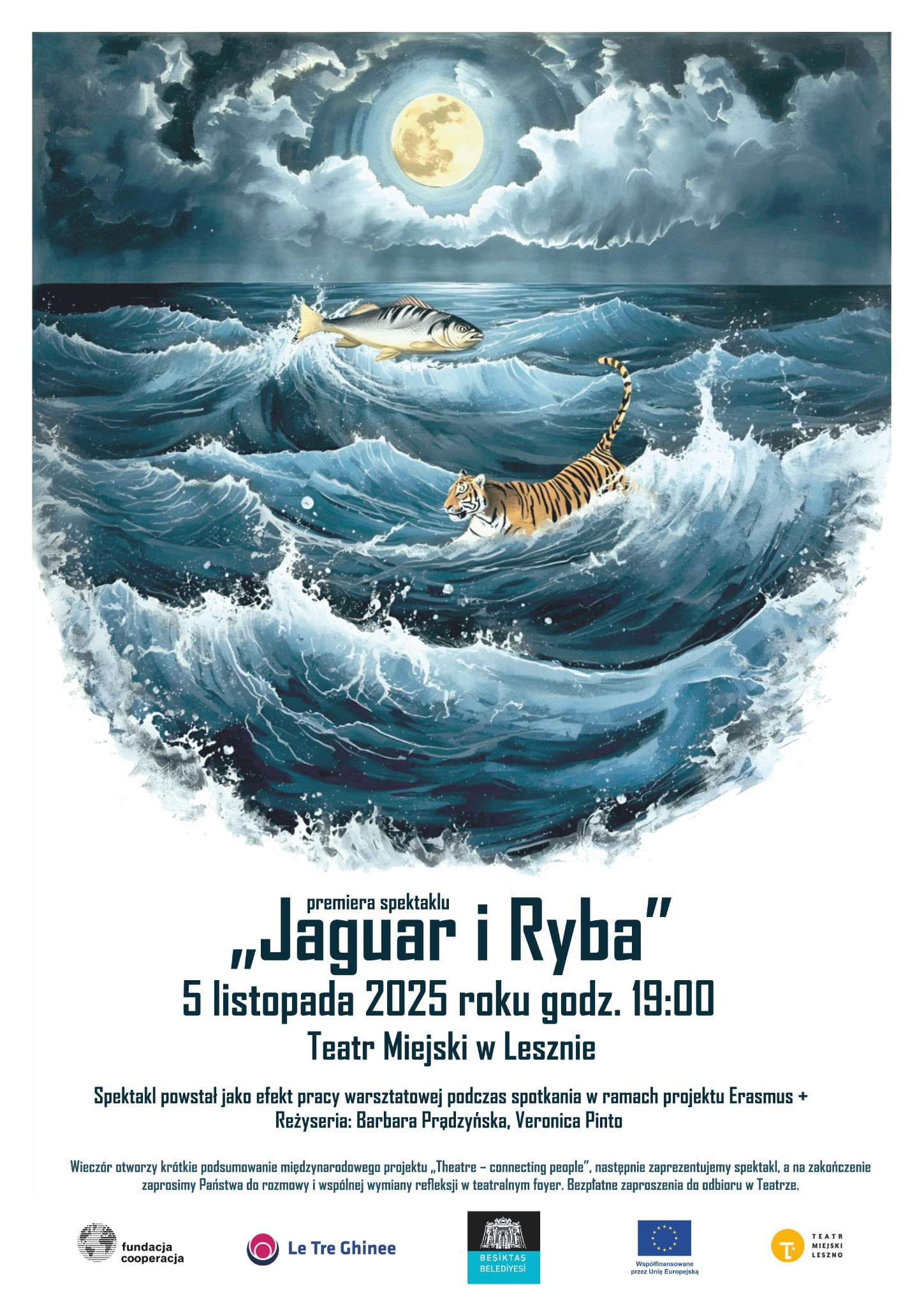 Miejscowość: Leszno Miejsce: Teatr Miejski w Lesznie Data rozpoczęcia: 05.11.2025 19:00:00 Data zakończenia: 05.11.2025 20:30:00 Organizator: Fundacja Cooperacja Opis wydarzenia: Serdecznie zapraszamy na premierę spektaklu „Jaguar i Ryba”, która odbędzie się 5 listopada 2025 roku o godzinie 19:00 w Teatrze Miejskim w Lesznie. Wieczór otworzy krótkie podsumowanie międzynarodowego projektu „Theatre – connecting people”, następnie zaprezentujemy spektakl, a na zakończenie zaprosimy Państwa do rozmowy i wspólnej wymiany refleksji w teatralnym foyer. O spektaklu: „Jaguar i Ryba” to spotkanie poetyckiego teatru i doświadczeń realnych ludzi – podróż przez pamięć, wyobraźnię i to, co nieuchwytne w opowieści o migracji, tożsamości i poszukiwaniu domu. Na scenie spotykają się osoby z różnych krajów i kultur – w tym te, które niosą w sobie doświadczenie uchodźstwa i migracji. Ich historie, splecione z obrazem, ruchem, muzyką i światłem, tworzą wielogłosową opowieść o odchodzeniu, powrotach i o tym, co zostaje, gdy przemija czas. W spektaklu cisza staje się równoważna ze słowem, codzienność przenika się z poezją, a różnorodne perspektywy budują przestrzeń wspólnego przeżywania. To teatr, który otwiera widza na współodczuwanie i bliskość z drugim człowiekiem. Spektakl powstał jako efekt pracy warsztatowej podczas spotkania w ramach projektu Erasmus+. Na scenie wystąpią osoby mieszkające w Polsce, Włoszech i Turcji, reprezentujące różne kultury i doświadczenia. Reżyserki: - Barbara Prądzyńska – aktorka, reżyserka i pedagożka teatru. Specjalizuje się w teatrze społecznym. Od wielu lat prowadzi projekty artystyczno-społeczne z grupami narażonymi na wykluczenie – m.in. z osobami z doświadczeniem migracyjnym, uchodźczym, mniejszościami etnicznymi. Jej działania realizowane były w Polsce i za granicą, m.in. w Niemczech, Gruzji, Turcji, Meksyku, Palestynie czy na Kubie. Obecnie prowadzi Studio Teatralne w CK Zamek w Poznaniu. - Veronica Pinto – edukatorka i reżyserka teatralna z Rzymu, działająca na styku sztuki, edukacji i praw człowieka. Specjalizuje się w warsztatach teatralnych o charakterze społecznym, które dotykają tematów migracji, międzykulturowości i gościnności. Traktuje teatr jako narzędzie budowania empatii i dialogu. Bezpłatne zaproszenia na wydarzenie, do odbioru w kasie Teatru |