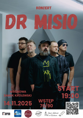Miejscowość: Wschowa Miejsce: Zamek Hotel Królewski we Wschowie Data rozpoczęcia: 14.11.2025 19:00:00 Data zakończenia: 14.11.2025 21:00:00 Organizator: Ficori, Fabryka Kultury Opis wydarzenia: Dr Misio, to męska załoga pod wodzą Arka Jakubika – jednego z najbardziej rozpoznawalnych polskich aktorów oraz scenarzysty, reżysera związanego z ambitnymi projektami filmowymi na kulturalnej mapie Polski, znanego m.in. ze świetnych ról dramatycznych w filmach Wojtka Smarzowskiego („Wesele”, „Dom zły”, „Drogówka”, „Wołyń”, „KLER”). Dr Misio grają ostrego rock&rolla bez przebaczenia. Solidne brzmienie, ciężkie riffy, znakomite, mądre teksty Krzysztofa Wargi oraz Marcina Świetlickiego i brak muzycznego kompromisu sprawiają, że to nowa i oryginalna propozycja nie tylko dla fanów rocka, ale przede wszystkim dla ludzi poszukujących w sztuce intelektualnych wrażeń i refleksji, otwartych na formę i nie stroniących od wspólnej, niemalże rytualnej zabawy. Dr Misio zagrali niezliczoną liczbę koncertów w całej Polsce od maleńkich klubów po wielkie koncerty plenerowe oraz festiwale takie jak: Jarocin, Przystanek Woodstock, Orkiestra Męskie Granie, Cieszanów Rock Festival, Co Jest Grane Festival, Festiwal TOP TRENDY, Festiwal TOP of The TOP. W 2021 roku zespół Dr Misio był nominowany do nagrody Fryderyk 2021 w kategorii – „Płyta roku”. Dr Misio są wspaniałym zespołem dla publiczności oczekującej od artysty podczas koncertu dużo energii i emocji, zarówno w klubie, jak i w plenerze, a Arek Jakubik jest uważany za jednego z najlepszych i najbardziej żywiołowych frontmanów na polskim rynku muzycznym. |