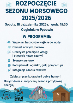 Miejscowość: Pępowo Miejsce: Cegielnia Pępowo - zbiornik wodny Data rozpoczęcia: 18.10.2025 15:30:00 Data zakończenia: 18.10.2025 17:00:00 Organizator: Morsy Pępowo Opis wydarzenia: Morsy Pępowo serdecznie zapraszają na rozpoczęcie sezonu 2025/2026 Szczegółowy program znajduje się na plakacie. |