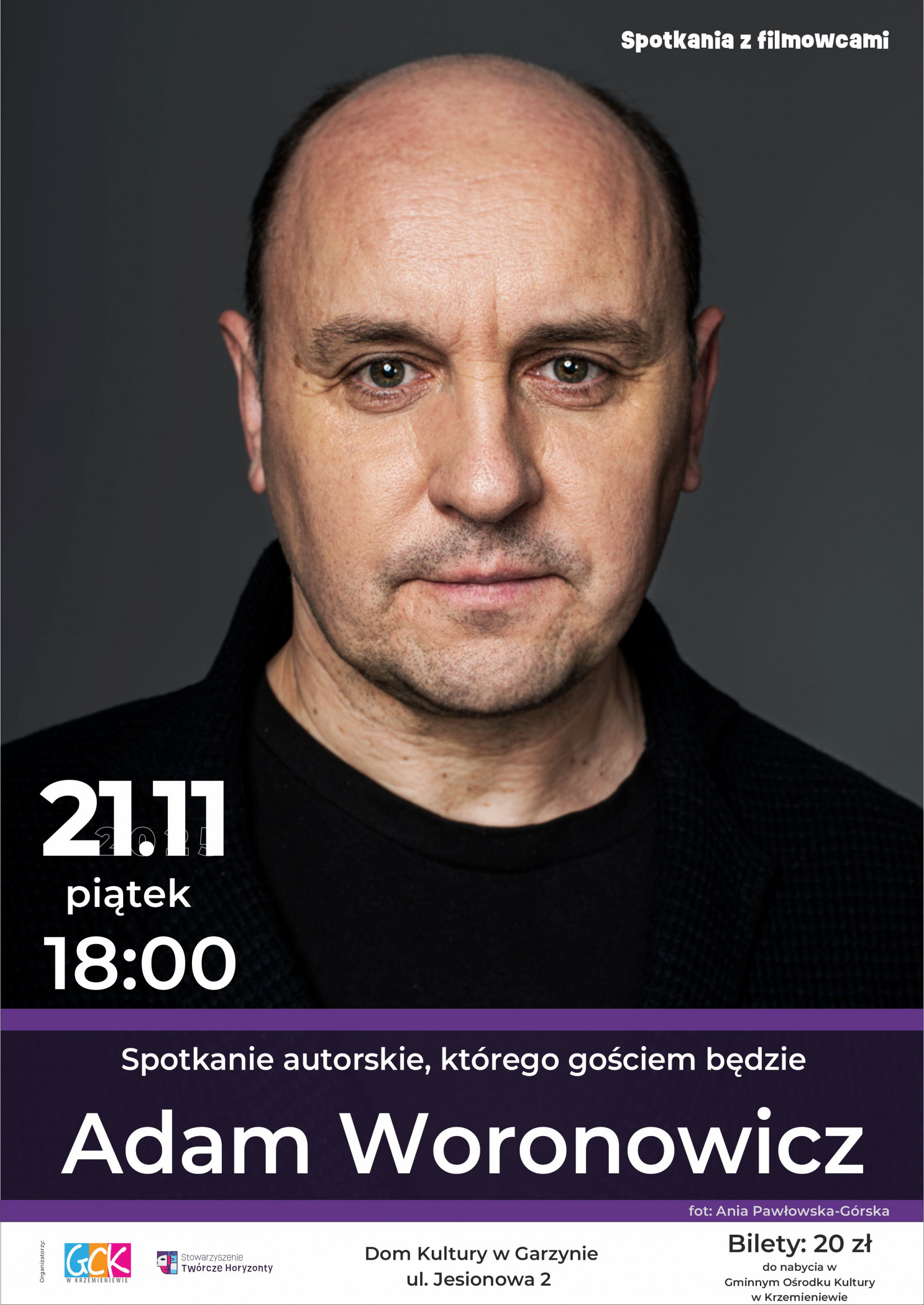 Miejscowość: Garzyn Miejsce: Dom Kultury w Garzynie Data rozpoczęcia: 21.11.2025 18:00:00 Data zakończenia: 21.11.2025 20:00:00 Organizator: Gminne Centrum Kultury w Krzemieniewie Opis wydarzenia: Spotkanie autorskie z Adamem Woronowiczem! Adam Woronowicz to aktor z niezwykłą charyzmą, szczerością i pasją. Posiada niesamowity potencjał aktorski, przed kamerą budzi się w nim filmowe zwierzę, ma niespożyte pokłady energii, które oddaje na planie, wręcz eksploduje talentem. Nie przegap okazji, by spotkać się z artystą, którego kreacje zapadają w pamięci na długo |