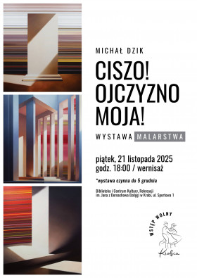 | Miejscowość: Krobia Miejsce: ul. Sportowa 1 Data rozpoczęcia: 21.11.2025 18:00:00 Data zakończenia: 05.12.2025 12:00:00 Organizator: Biblioteka i Centrum Kultury, Rekreacji im. Jana z Domachowa Bzdęgi w Krobi Opis wydarzenia: Wystawa Ciszo! Ojczyzno moja! inspirowana „Panem Tadeuszem” kieruje uwagę ku temu, czego każdy z nas pragnie – ciszy, która staje się domem dla serca. Artysta, łącząc duchowość z codziennym doświadczeniem, tworzy obrazy balansujące między rozpoznawalnym a abstrakcyjnym. Każde płótno to intymna notatka – zapis spotkania z Absolutem, światem i samym sobą. Towarzyszące komentarze otwierają nowe interpretacje, zapraszając do głębokiej refleksji. |