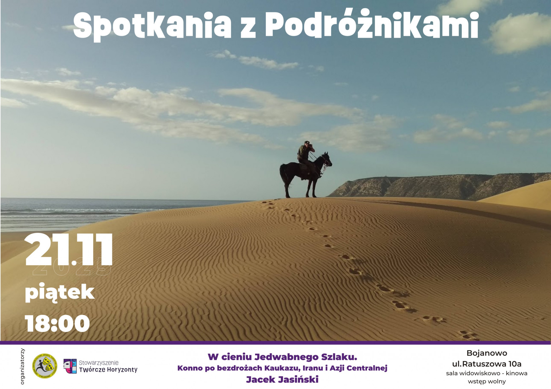 | Spotkania z Podróżnikami "W cieniu Jedwabnego Szlaku. Konno po bezdrożach Kaukazu, Iranu i Azji Centralnej" Jacek Jasiński |