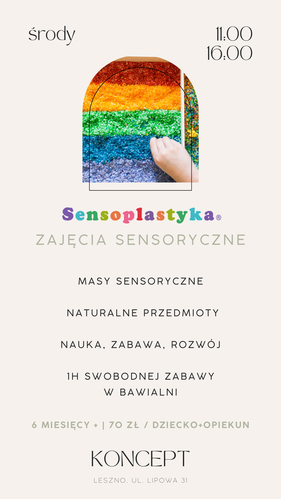 | 19.11.2025 | Leszno | Sensoplastyka - zajęcia sensoryczne dla dzieci od 6. miesiąca życia |