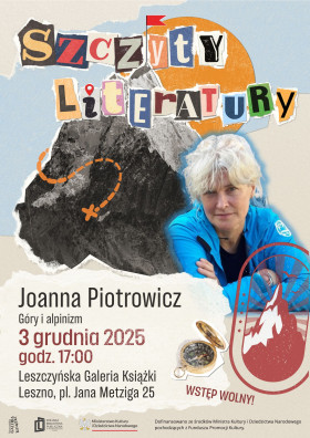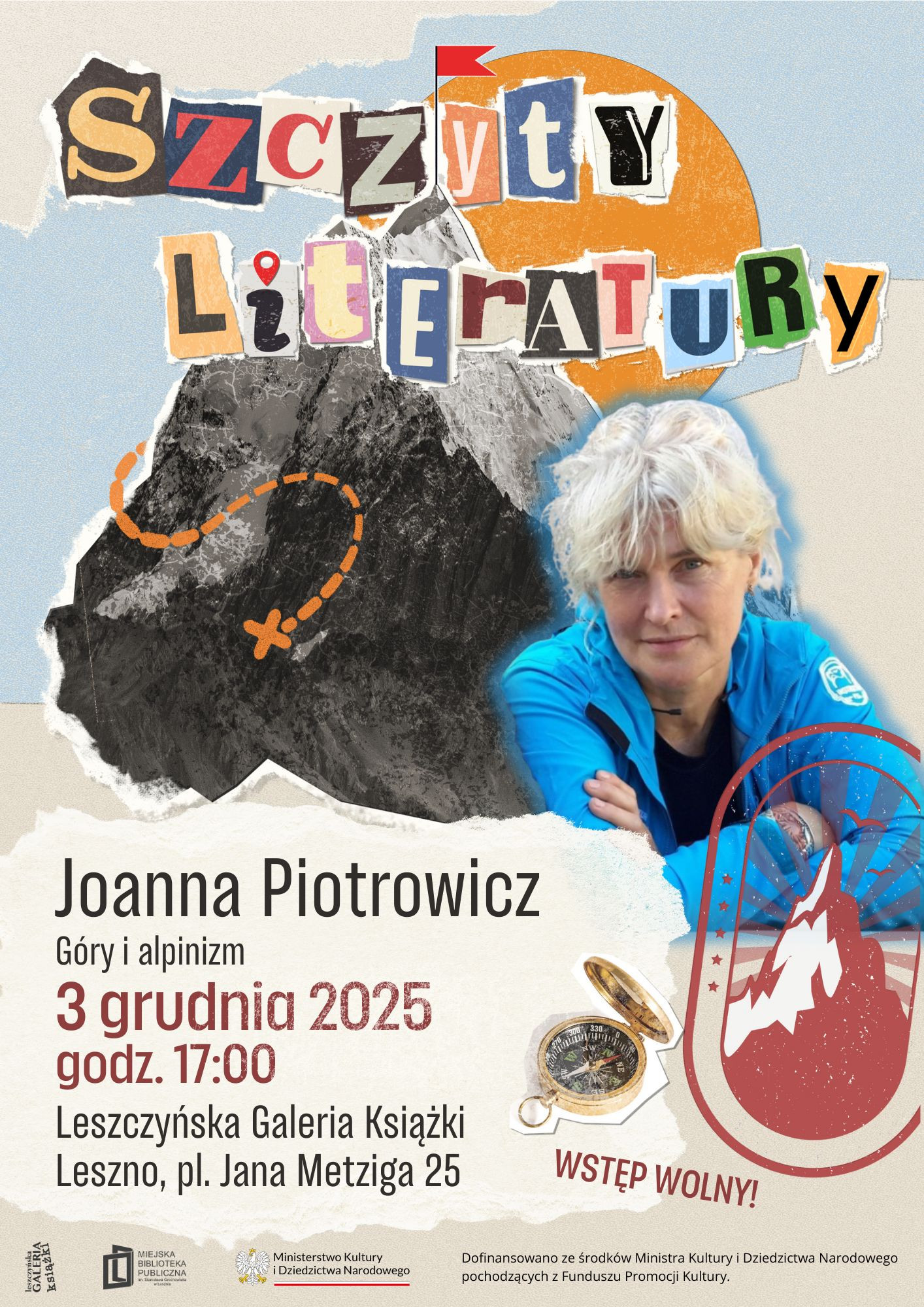 | Miejscowość: Leszno Miejsce: Leszczyńska Galeria Książki (pl. Jana Metziga 25) Data rozpoczęcia: 03.12.2025 17:00:00 Data zakończenia: 03.12.2025 18:00:00 Organizator: MBP Leszno Opis wydarzenia: Jak to jest stanąć na szczycie świata i spojrzeć z wysokości na wszystko, co zna się z map i książek? O tym opowie Joanna Piotrowicz – himalaistka, instruktorka wspinaczki skalnej i podróżniczka – podczas spotkania w ramach projektu Szczyty Literatury. W barwnej opowieści o Tatrach, Himalajach i kobietach w górach przybliży również kwestie bezpieczeństwa i ochrony górskiej przyrody. Spotkanie odbędzie się 3 grudnia 2025 o godzinie 17:00 w Leszczyńskiej Galerii Książki (pl. Jana Metziga 25). Wstęp wolny! O prelegentce: Joanna Piotrowicz prowadzi własną szkołę wspinania „Góry i Alpinizm”, eksplorowała Tatry, Alpy (m.in. Matterhorn, Mont Blanc, Mont Maudit, Grossglockner), Bałkany i Himalaje (Langtang), zdobyła Aconcaguę, a jako druga Polka – Chan Tengri. Jest autorką licznych artykułów i felietonów, publikowała w miesięczniku „Góry i Alpinizm” oraz w „Taterniku”, a jej eksperckie wypowiedzi pojawiały się w radiu i telewizji. Joanna Piotrowicz jest jedną z bohaterek książki Mariusza Sepioło „Himalaistki”. Dofinansowano ze środków Ministra Kultury i Dziedzictwa Narodowego pochodzących z Funduszu Promocji Kultury. |