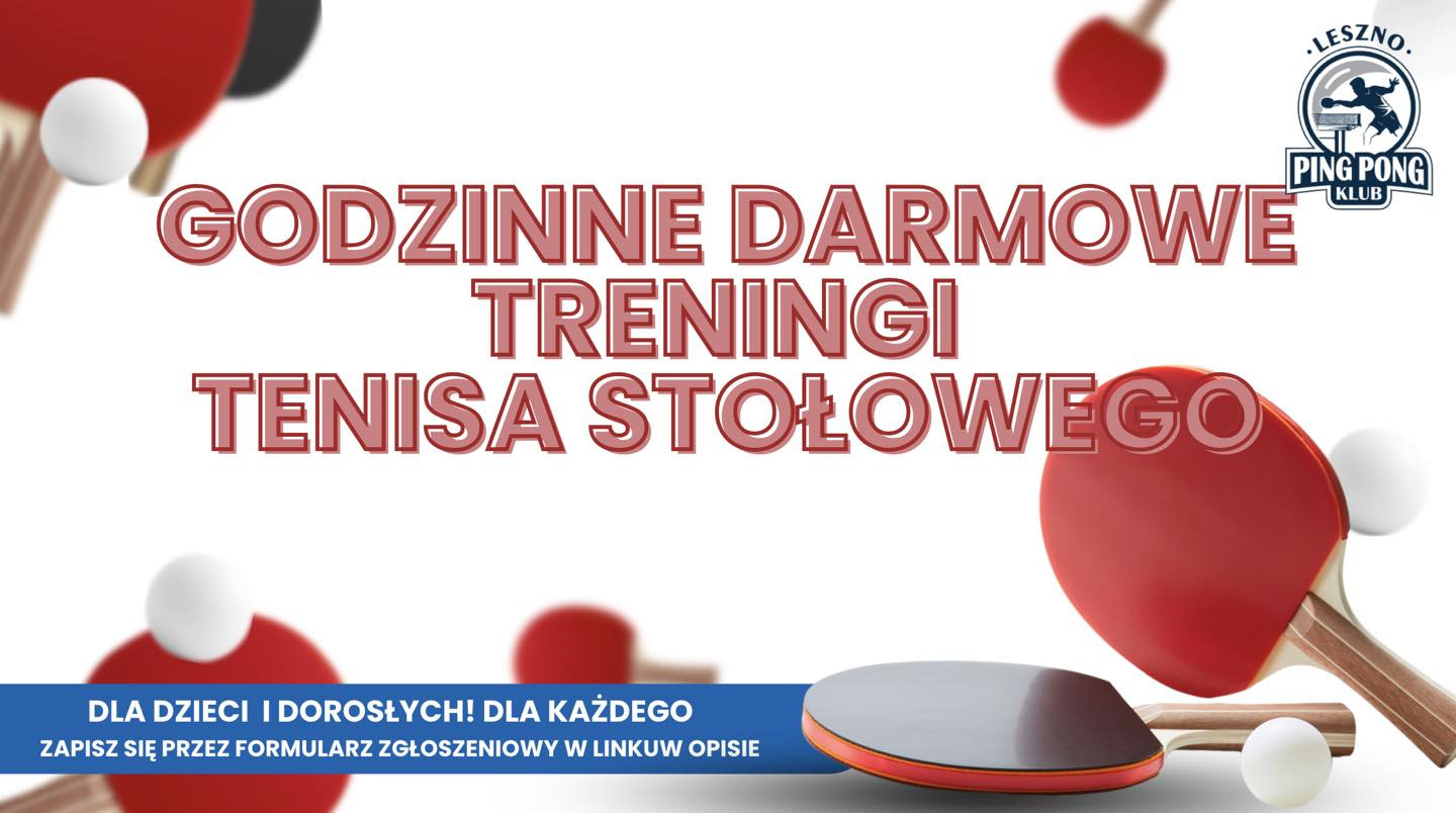 | Miejscowość: Leszno Miejsce: Leszno Tenis Klub Data rozpoczęcia: 21.11.2025 12:00:00 Data zakończenia: 29.12.2025 15:00:00 Organizator: Leszno Tenis Klub Opis wydarzenia: DARMOWY TRENING TENISA STOŁOWEGO – DLA KAŻDEGO! |