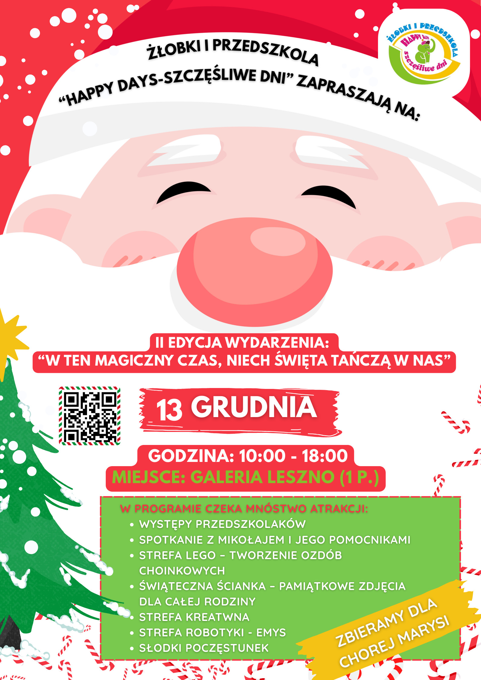 | Miejscowość: Leszno Miejsce: Galeria Leszno Data rozpoczęcia: 13.12.2025 10:00:00 Data zakończenia: 13.12.2025 18:00:00 Organizator: Dwuzmianowe Przedszkole "Happy Days-Szcześliwe Dni" Opis wydarzenia: Już po raz drugi Przedszkole "Happy Days - Szczęśliwe Dni" zaprasza wszystkie dzieci wraz z rodzicami do wyjątkowej, bajkowej przestrzeni stworzonej specjalnie na czas Świąt w Galerii Leszno! Co na was czeka? Występy małych artystów Świąteczna Strefa LEGO Kreatywna Strefa Elfów Roboty w świątecznym wydaniu Kącik świątecznych przysmaków Dołączcie do nas i pozwólcie, by w ten magiczny czas… święta naprawdę zatańczyły w nas! Szukajcie nas na I piętrze! https://fb.me/e/7GiJVm82u |
