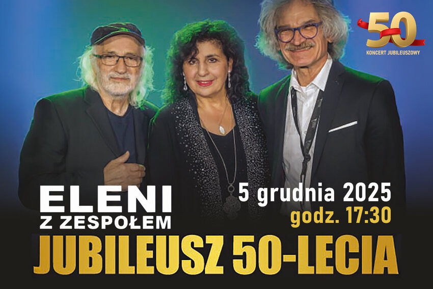 | Miejscowość: Kościan Miejsce: KOK, ul. Mickiewicza 11 Data rozpoczęcia: 05.12.2025 17:30:00 Data zakończenia: 05.12.2025 19:00:00 Organizator: MEG-ART SHOW Opis wydarzenia: Zapraszamy Państwa serdecznie na wyjątkowy, koncert Eleni z zespołem — Jubileusz 50-lecia! Będzie to muzyczna podróż z największymi przebojami piosenkarki, które śpiewa od 50 lat. Usłyszymy piosenki zespołu Prometusz takie jak "Po słonecznej stronie życia", "Ballado hej, ballado niepokorna", w którym Eleni rozpoczynała karierę. Przeboje takie jak: Miłość jak wino, Troszeczkę ziemi troszeczkę słońca, Po słonecznej stronie życia, A słońce sobie lśni - to kulminacja koncertu. Nostalgiczne, pełne refleksji piosenki: nic miłości nie pokona oraz nim świt obudzi noc — to druga część koncertu zakończona wiązanką przebojów greckich oraz zorbą. Trzecia część koncertu to największe przeboje lat 90-tych oraz na zakończenie grecka piosenka w podziękowaniu publiczności za 50 lat obecności. Artystce towarzyszyć będzie zespół: Alksander Białous - gitara, Buzuki, Kostas Dzokas- Buzuki Zapraszamy Państwa serdecznie! Data: 5 grudnia 2025 Godz.: 17:30 Miejsce: Sala widowiskowa Kościańskiego Ośrodka Kultury Czas trwania: 100 min Bilety na www.kupbilecik.pl |