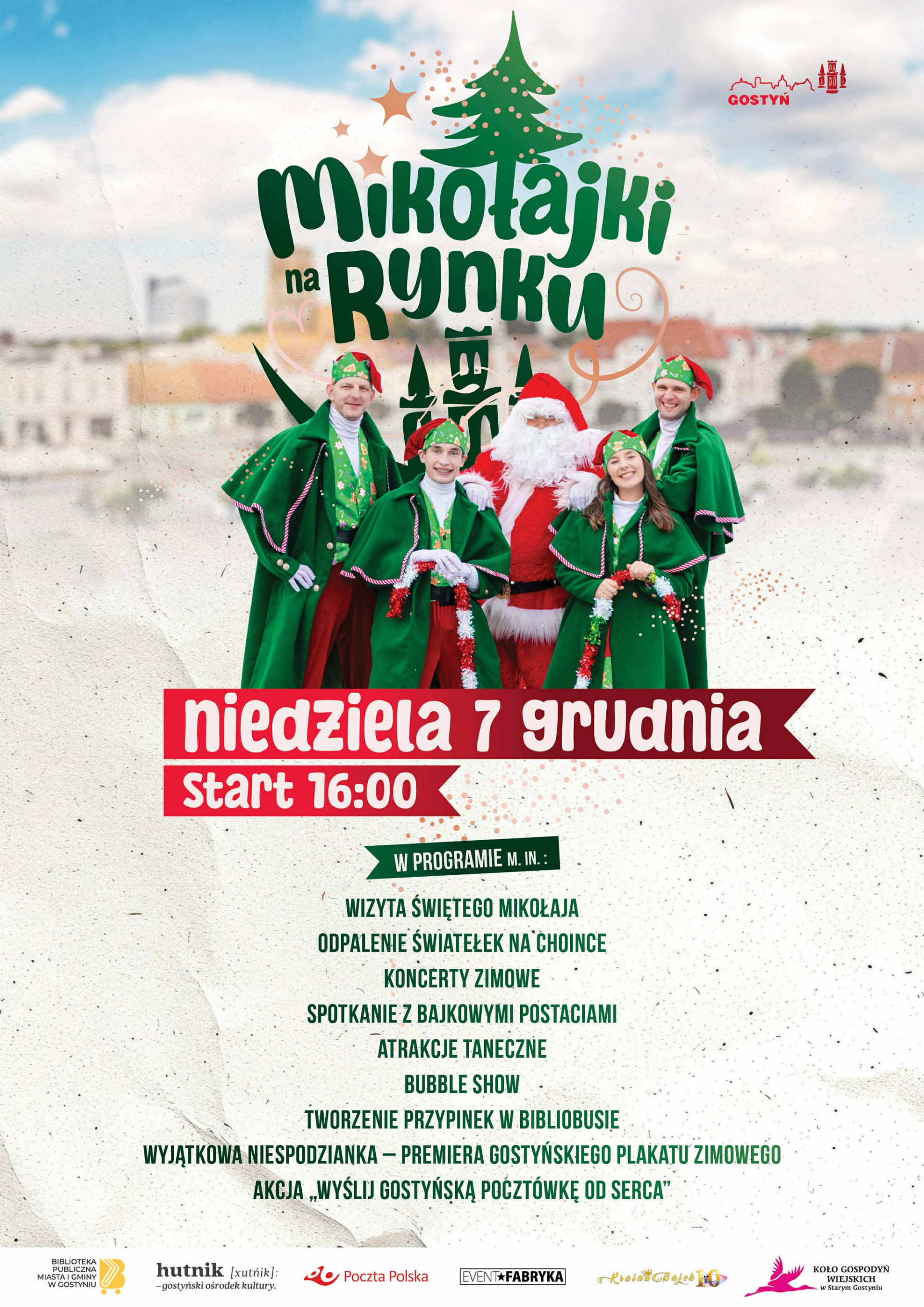 | Miejscowość: Gostyń Miejsce: Gostyński Rynek Data rozpoczęcia: 07.12.2025 16:00:00 Data zakończenia: 07.12.2025 19:00:00 Organizator: Gmina Gostyń Opis wydarzenia: Tegoroczne „Mikołajki na Rynku” w Gostyniu zapowiadają się wyjątkowo. Już w niedzielę, 7 grudnia 2025 roku, główny plac naszego miasta zamieni się w pełną świątecznej magii Krainę Bajek Świętego Mikołaja. Impreza rozpocznie się o godzinie 16.00 i potrwa do 19.00. Dla uczestników przygotowano niezapomniane mikołajkowe atrakcje, z których skorzystają zarówno dzieci, jak i dorośli. Wydarzenie rozpocznie się programem artystycznym „Świąteczny Czas w Krainie Bajek”, który wprowadzi wszystkich w wyjątkowy nastrój. Na scenie pojawi się również zespół NEW JAZZ BAND. Nie zabraknie spotkań z bohaterami z bajek, specjalnego muzycznego show Pani Choinki, a także widowiskowego Bubble Show, które szczególnie ucieszy najmłodszych. Otwarty zostanie również domek, w którym przy dźwiękach muzyki będzie można spotkać samego Świętego Mikołaja i poczuć prawdziwie świąteczną atmosferę. Najbardziej wyczekiwany moment wieczoru to oczywiście odpalenie lampek na choince. Temu wyjątkowemu wydarzeniu towarzyszyć będzie premiera pierwszego gostyńskiego plakatu zimowego, zaprojektowanego specjalnie na tę okazję. W trakcie imprezy, we współpracy z gostyńską Pocztą, przeprowadzimy akcję „Wyślij gostyńską pocztówkę od serca”. Przygotujemy kilkaset pocztówek, które uczestnicy będą mogli nadać do wysyłki na specjalnym stoisku pocztowym, zlokalizowanym na terenie imprezy. W ten sposób wyślemy odrobinę gostyńskiej, mikołajkowej magii do naszych bliskich. Pamiętajmy jednak, że liczba pocztówek będzie ograniczona. Dzięki współpracy z Biblioteką Publiczną Miasta i Gminy w Gostyniu uczestnicy będą też mogli stworzyć przypinki w gostyńskim Bibliobusie, który stanie na Rynku. Serdecznie zapraszamy do udziału w imprezie. |
