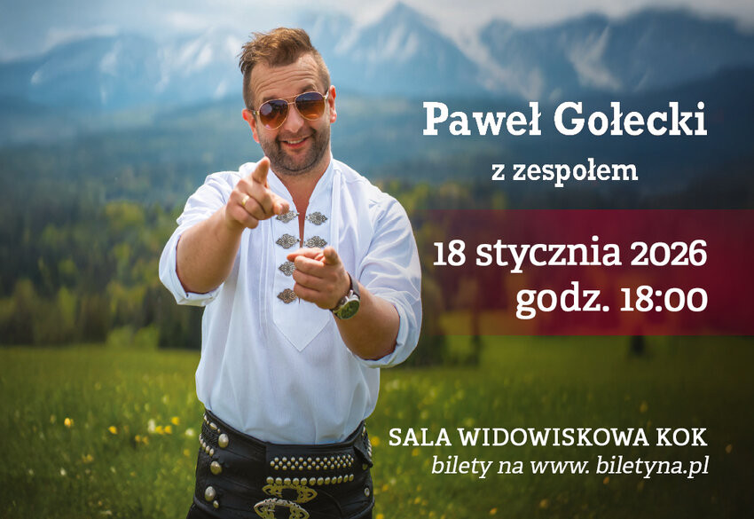 | Miejscowość: Kościan Miejsce: sala widowiskowa, ul. Mickiewicza 11 Data rozpoczęcia: 18.01.2026 18:00:00 Data zakończenia: 18.01.2026 20:00:00 Organizator: Make Music Opis wydarzenia: Paweł Gołecki i Góralski Temperament Rozgrzeją Kościan! Koncert Pełen Energii w KOKu! Drodzy Miłośnicy Żywiołowej Muzyki i Góralskiego Klimatu! Kościański Ośrodek Kultury ma przyjemność zaprosić Was na wyjątkowe wydarzenie, które z pewnością na długo pozostanie w pamięci – koncert Pawła Gołeckiego z zespołem! To będzie spotkanie z artystami, które łączy pokolenia, serwując mieszankę muzyki tanecznej, folkowej i autorskiej nuty prosto z serca. Paweł Gołecki, pochodzący z malowniczej Koniny w województwie małopolskim, muzyką nasiąkał od najmłodszych lat, zarażony pasją przez swojego ojca, lidera zespołu weselnego. Już wtedy było jasne, że jego przyszłość zwiąże się ze sceną i dźwiękami. Rozpoczął od założenia własnego Zespołu Gołecki, z którym nagrał debiutancki album, błyskawicznie rozwijając swoją karierę. Dziś na swoim koncie ma nie tylko współpracę z Kapelą Górole i kolejne albumy zespołowe, ale przede wszystkim długo wyczekiwaną, solową płytę zatytułowaną po prostu „Paweł Gołecki”. Znajdziecie na niej piętnaście autorskich utworów, które mają moc poruszania, wzruszania i zachęcania do wspólnego śpiewania. Podczas koncertu w KOK-u nie zabraknie największych przebojów, które są doskonale znane z anten lokalnych rozgłośni radiowych oraz telewizji TVS. Przygotujcie się na to, by zaśpiewać razem z Pawłem: „A ty tego nie wiesz” „Piękni i młodzi” „Justynie Wierni” – ten utwór, dedykowany mistrzyni Justynie Kowalczyk, z pewnością wywoła sportowe emocje! Piosenki Gołeckiego to żywiołowe połączenie autentyczności, góralskiego temperamentu i niesamowitej, pozytywnej energii. To muzyka z duszą, która porywa do tańca i sprawia, że nogi same rwą się do ruchu! Nie Przegapcie Tego Spotkania! Jeśli szukacie koncertu pełnego radości, góralskiego temperamentu i niepowtarzalnego klimatu, to wydarzenie jest właśnie dla Was. Paweł Gołecki gwarantuje niezapomniane emocje i dawkę optymizmu, która pozostanie z Wami na długo. Zapraszamy serdecznie do Kościańskiego Ośrodka Kultury! Spędźmy ten wieczór w rytmach, które rozgrzewają serca i łączą pokolenia. 18 stycznia 2026 godz. 18:00 sala widowiskowa KOK Bilety dostępne on-line: https://biletyna.pl/koncert/Pawel-Golecki-z-zespolem |