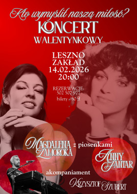 | Miejscowość: Leszno Miejsce: Pub Zakład Data rozpoczęcia: 14.02.2026 20:00:00 Data zakończenia: 14.02.2026 22:00:00 Organizator: Pub Zakład, Magdalena Zamoroka, Krzysztof Szubert Opis wydarzenia: Spędź walentynkowy wieczór przy dźwiękach muzyki. Możesz zabrać ze sobą drugą połowę, grupę przyjaciół lub przyjść sam/sama i poznać nowych, ciekawych ludzi. Tego wieczoru widzimy się w leszczyńskim Zakładzie. Nie może Cię zabraknąć! Znane i mniej znane piosenki z repertuaru niezapomnianej Anny Jantar zaśpiewa Magdalena Zamoroka przy akompaniamencie pianina Krzysztofa Szuberta. *** ZAKŁAD Róg Bocznej i Tylnej LESZNO 14.02.2026 (sobota) godz. 20:00 Wstęp 50 zł (na miejscu) Rezerwacje pod numerem: 502 507 977 Liczba miejsc ograniczona. *** ANNA JANTAR - Uchodziła za ikonę muzyki pop polskiej estrady. Zaliczana do grona popularnych i słynnych polskich piosenkarek lat 70. XX wieku. Wylansowała takie przeboje jak m.in.: „Tyle słońca w całym mieście”, „Nic nie może wiecznie trwać”, „Staruszek świat”, „Najtrudniejszy pierwszy krok”, „Za każdy uśmiech”, „Baju-baj proszę pana (Jambalaya)”, „Radość najpiękniejszych lat”, „Nie wierz mi, nie ufaj mi”, czy „Moje jedyne marzenie”. W sumie zaśpiewała ok. 160 piosenek różnych kompozytorów. Współpracowała z wieloma artystami, m.in. ze Stanisławem Sojką, Bogusławem Mecem, Zbigniewem Hołdysem czy Andrzejem Tenardem, poza tym nagrywała piosenki z zespołami Budka Suflera i zespołem Perfect. MAGDALENA ZAMOROKA - wokalistka i autorka piosenek. W kwietniu ubiegłego roku wydała swój autorski album muzyczny "Poszukiwania". Piosenka "Wstaje nowy dzień" przez trzy miesiące była w pierwszej dziesiątce listy przebojów Radia Kraków. Mogliście ją zobaczyć w "Szansie na sukces", "Tak to leciało!" i w chórkach kilku telewizyjnych koncertów u boku m.in Justyny Steczkowskiej czy Ani Wyszkoni. Jest wokalistką zespołów Zamoroka Band i Chwile oraz współpracuje z Teatrem Muzycznym Gawra Artystyczna z Poznania i Chórem Nauczycieli Gminy Rawicz. Na co dzień prowadzi autorskie Studio wokalne Kreacja w Rawiczu. KRZYSZTOF SZUBERT - pianista, multiinstrumentalista, muzyk, aranżer, pedagog. Związany z wieloma grupami muzycznymi - obecnie m.in. Adrenalina i Acoustic Trio. Uczestnicząc w wielu projektach muzycznych, zjeździł całą Polskę jak również grywał koncerty za granicą. *** Dołącz do wydarzenia i bądź na bieżąco: https://www.facebook.com/events/1640868477276936 |