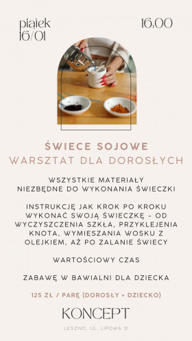 Uwielbiamy takie połączenia, dlatego zapraszamy Was do KONCEPTu na warsztat z tworzenia zapachowych świec sojowych już w PIĄTEK 16. stycznia o godz. 16:00!