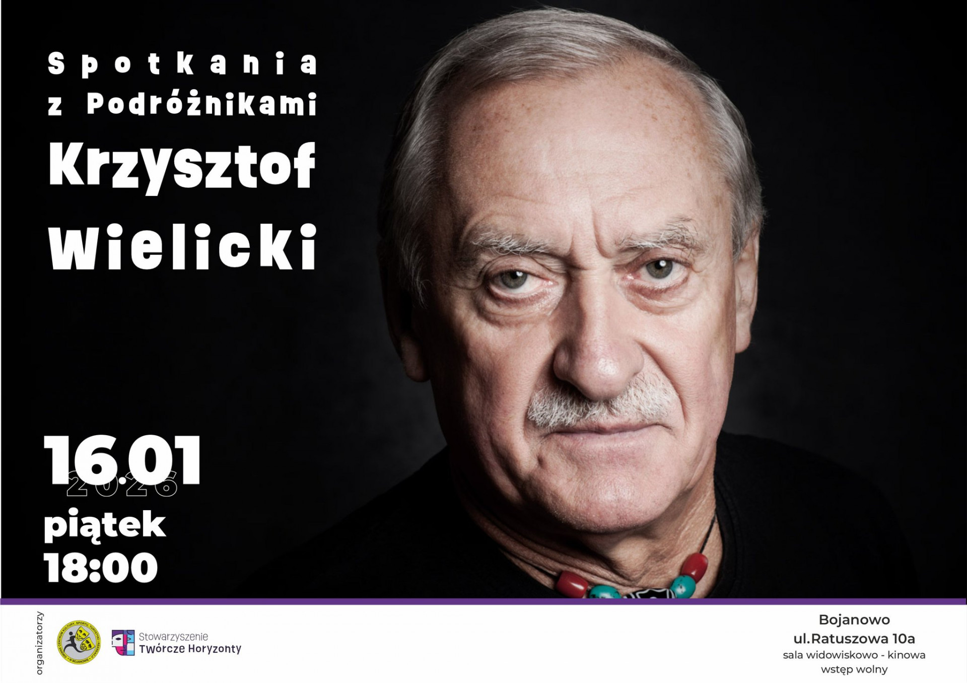| Miejscowość: Bojanowo Miejsce: Gminne Centrum Kultury, Sportu, Turystyki i Rekreacji w Bojanowie Data rozpoczęcia: 16.01.2026 18:00:00 Data zakończenia: 16.01.2026 19:00:00 Organizator: Gminne Centrum Kultury, Sportu, Turystyki i Rekreacji w Bojanowie oraz Stowarzyszenie Twórcze Horyzonty Opis wydarzenia: 16 stycznia br. zapraszamy serdecznie na wyjątkowe spotkanie w ramach cyklu "Spotkań z Podróżnikami". Gościć będziemy pana Krzysztofa Wielickiego, legendarnego himalaistę. Krzysztof Wielicki znany jest z licznych osiągnięć, w tym zdobycia Korony Himalajów. Jego umiejętności i determinacja sprawiły, że stał się wzorem dla pokoleń miłośników gór. Serdecznie zapraszamy Wstęp wolny!!! |