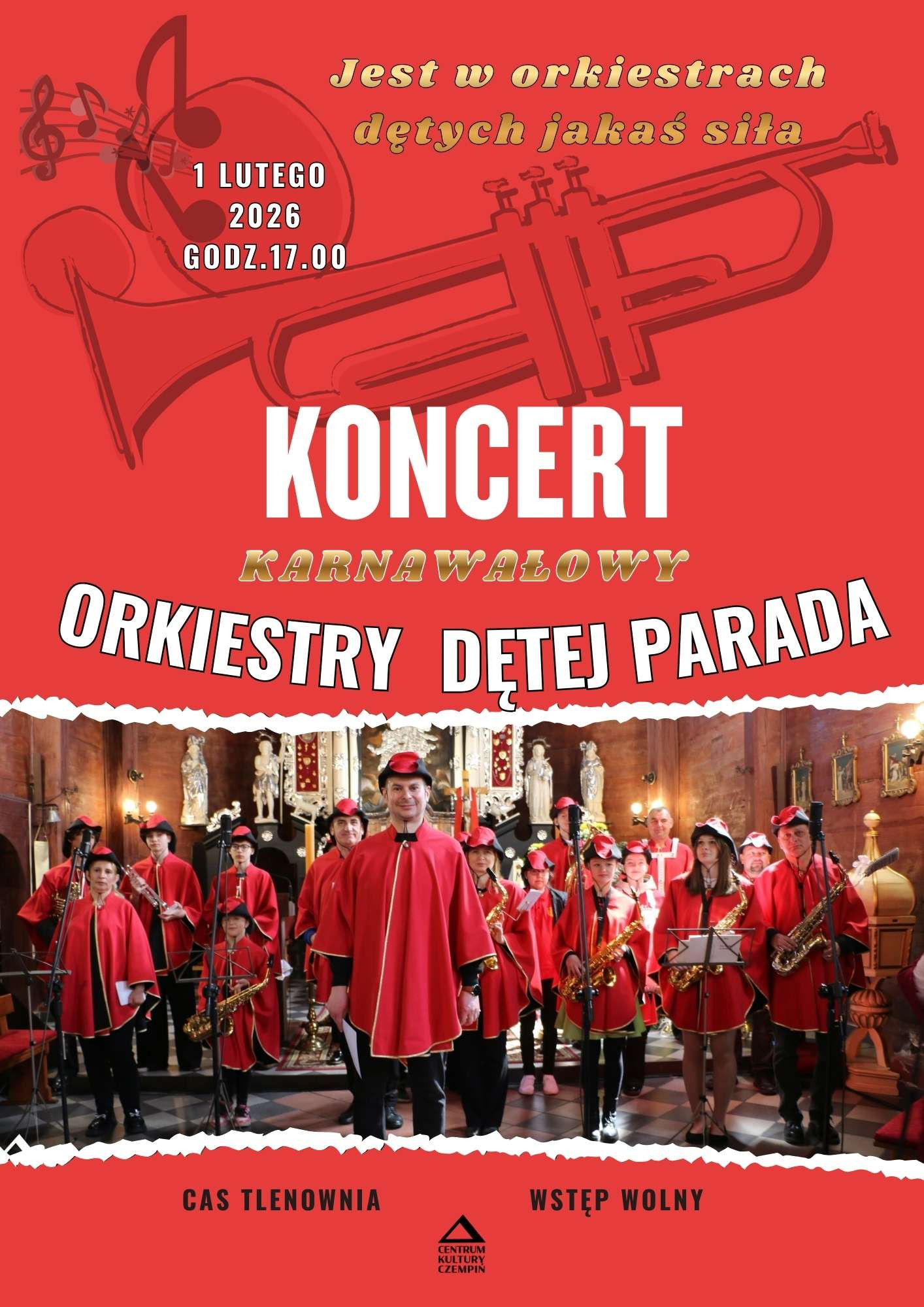 | Miejscowość: Czempiń Miejsce: CAS Tlenownia, Czempiń ul. Nowa 2 Data rozpoczęcia: 01.02.2026 17:00:00 Data zakończenia: 01.02.2026 18:15:00 Organizator: Centrum Kultury Czempiń Opis wydarzenia: Jest w orkiestrach dętych jakaś siła... W niedzielę 1 lutego zapraszamy do CAS Tlenownia na dęte brzmienia:) |
