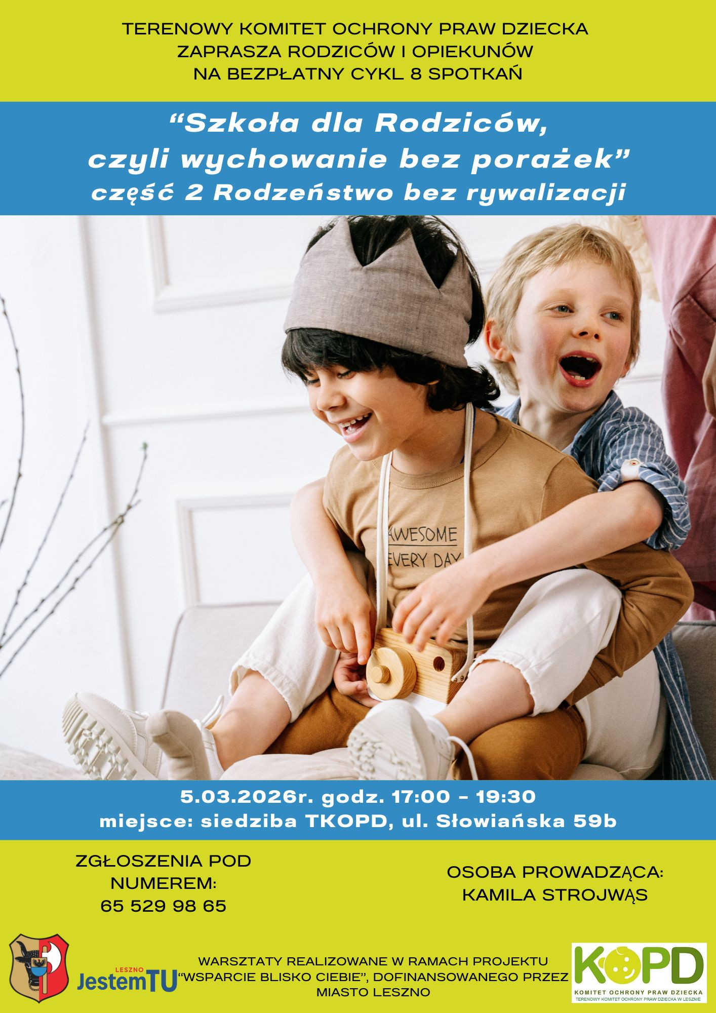 Miejsce: Terenowy Komitet Ochrony Praw Dziecka w Lesznie, ul. Słowiańska 59b.
