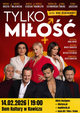 | Miejscowość: Rawicz Miejsce: Dom Kultury w Rawiczu ul. Targowa 1 Data rozpoczęcia: 14.02.2026 19:00:00 Data zakończenia: 14.02.2026 20:30:00 Organizator: Dom Kultury w Rawiczu Opis wydarzenia: Danka kocha Tomasza, a on świata poza nią nie widzi. Joanna wpatrzona jest w Grzegorza jak w obrazek, a on nie wyobraża sobie bez niej życia. Są ze sobą od lat, bezgranicznie sobie ufają i o wszystkim sobie mówią. Szczęśliwi, zakochani, spełnieni. Chciałoby się rzec: małżeństwa idealne. Ale czy na pewno? Co wydarzy się, gdy ich losy niebezpiecznie zaczną się ze sobą splatać? Co stanie się, gdy w ich związki wkradną się wątpliwości? Co, jeśli okaże się, że każde z nich ma jakieś grzechy na sumieniu? W tym czworokącie miłosnych zagrywek emocji nie zabraknie. Prawda będzie mieszać się z kłamstwem, miłość z nienawiścią, a gorący płomień namiętności z przeszywającym do szpiku kości chłodem. „Tylko miłość. Sceny z życia małżeńskiego” to intrygująca komedia w gwiazdorskiej obsadzie, w której możemy przejrzeć się jak w lustrze. To potężna dawka inteligentnego humoru, zaskakujących zwrotów akcji i życiowych refleksji. To sztuka inna niż wszystkie. To po prostu trzeba zobaczyć! |