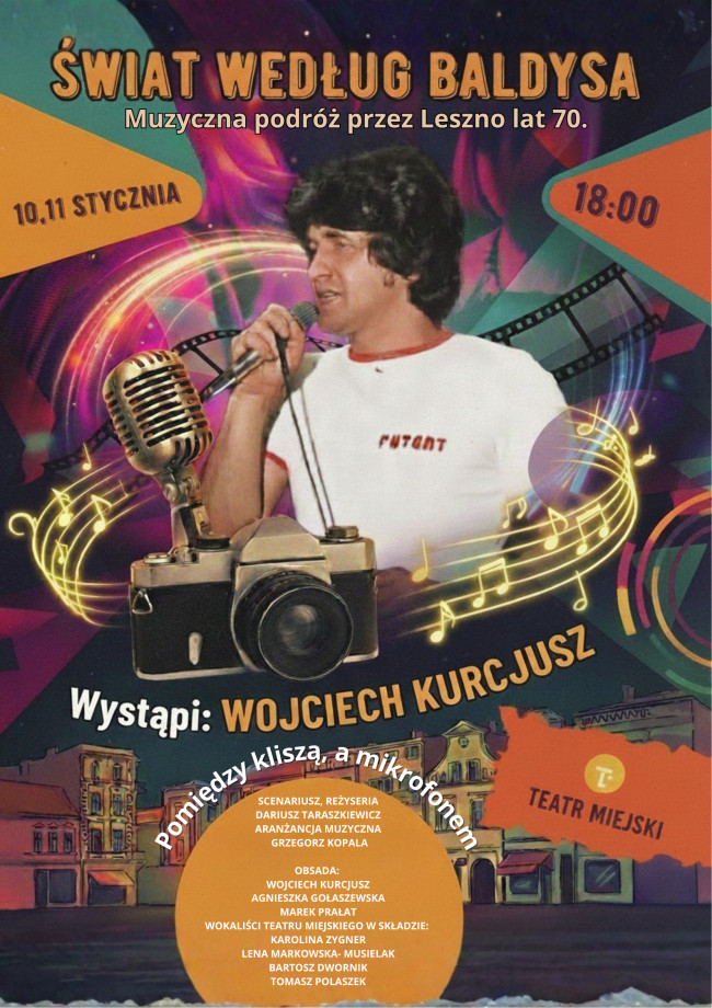 | Miejscowość: Leszno Miejsce: Teatr Miejski w Lesznie, ul. Narutowicza 69 Data rozpoczęcia: 07.02.2026 16:00:00 Data zakończenia: 07.02.2026 17:30:00 Organizator: Teatr Miejski w Lesznie Opis wydarzenia: Leszno znów rozbłyśnie kolorami minionych dekad. „Świat według Baldysa” to wieczór, który przeniesie publiczność prosto w czasy, gdy na dancingach królowały żywe rytmy, a ulice miasta tętniły niepowtarzalną energią lat 70. i 80. To nie jest zwykły koncert ani klasyczna wystawa – to multimedialny spektakl utkany z muzyki, wspomnień i fotografii człowieka, który potrafił zamienić codzienność w sztukę. Edward „Edzio” Baldys – dla wielu „Edy Bady” – był kimś więcej niż lokalną gwiazdą estrady. Jako fotograf, wodzirej i kronikarz życia Leszna potrafił uchwycić gesty, spojrzenia i momenty, które dziś są bezcennym zapisem epoki. Jego tysiące zdjęć to miasto, które znamy, ale którego już nie ma – wciąż jednak żyje w jego kadrach i naszej pamięci. Na scenie zabrzmią piosenki, które Baldys śpiewał i kochał. Usłyszycie m.in. „Nic na wieki”, „Kłamczuchę”, „Ofiarę” oraz wiele innych polskich i zagranicznych przebojów, w nowych interpretacjach aktora i wokalisty Wojciecha Kurcjusza (znanego z musicali „We Will Rock You”, „Mamma Mia”). Jego wykonania stworzą pomost między światem Edzia a współczesną wrażliwością. Spektakl dopełnią wielkoformatowe fotografie Baldysa – obrazy Leszna pełnego ruchu, barw i emocji. To podróż w czasie, która pozwala zobaczyć nasze miasto dokładnie tak, jak widział je on: z czułością, humorem i uważnością na detale. Przyjdź, posłuchaj, zobacz. Wróćmy na chwilę do Leszna, które wciąż pulsuje w zdjęciach Baldysa i w sercach tych, którzy pamiętają tamte lata. Obsada: Wojciech Kurcjusz Agnieszka Gołaszewska Marek Prałat WOKALIŚCI TEATRU MIEJSKIEGO W SKŁADZIE: Karolina Zygner Lena Markowska - Musielak Bartosz Dwornik Tomasz Polaszek Bilety do zakupienia w kasie teatru - tel. 790 466 699 lub online https://www.teatrmiejskileszno.pl/SWIAT_WEDLUG_BALDYSA,12,192 |