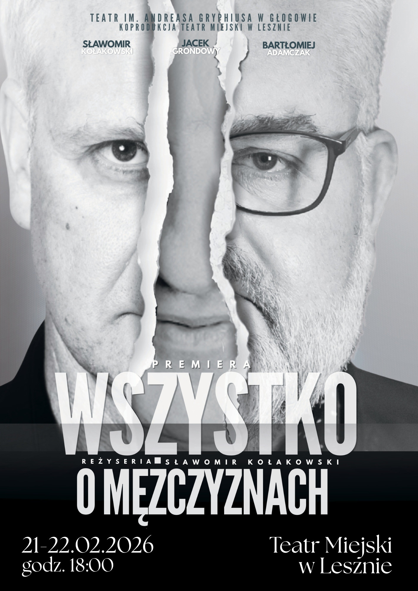 | Miejscowość: Leszno Miejsce: Teatr Miejski w Lesznie, ul. Narutowicza 69 Data rozpoczęcia: 21.02.2026 18:00:00 Data zakończenia: 22.02.2026 18:00:00 Organizator: Teatr Miejski w Lesznie Opis wydarzenia: Teatr Miejski w Lesznie zaprasza na spektakl „Wszystko o mężczyznach” Miro Gavrana - to pełna humoru, wzruszeń i życiowych obserwacji podróż po świecie współczesnych mężczyzn. Twórcy prezentują widzom portret męskiej duszy – prostolinijnej, lecz niepozbawionej głębokich rozterek oraz osobistych dylematów. Na scenie odsłania się cała gama uczuć i emocji: od tęsknoty i pragnienia bliskości, przez samotność i strach, aż po siłę płynącą z przyjaźni i lojalności. Trzech utalentowanych aktorów wciela się w rozmaite postaci – bywalców siłowni, klubów nocnych, ludzi stojących w obliczu utraty bliskich. Każda scena – komiczna, przejmująca lub refleksyjna – pokazuje inne, czasem zaskakujące oblicze męskości, zdecydowanie odbiegające od stereotypów. Zestawienie energii, błyskotliwych dialogów i znakomitego warsztatu aktorskiego tworzy widowisko, które bawi, ale również pozostawia przestrzeń na refleksję o tym, co naprawdę jest ważne w męskim świecie. Spektakl skłania do zastanowienia nad tym, co buduje, a co burzy męską tożsamość – daje widzom impuls do zadania sobie pytania o sens, relacje i głębię codziennych wyborów. Realizatorzy Autor Miro Gavrana Reżyseria Sławomir Kołakowski Obsada Bartosz Adamczak Jacek Grondowy Sławomir Kołakowski Bilety do zakupienia w kasie teatru – tel. 790 466 699 lub online https://www.teatrmiejskileszno.pl/WSZYSTKO_O_MEZCZYZNACH,12,196 |