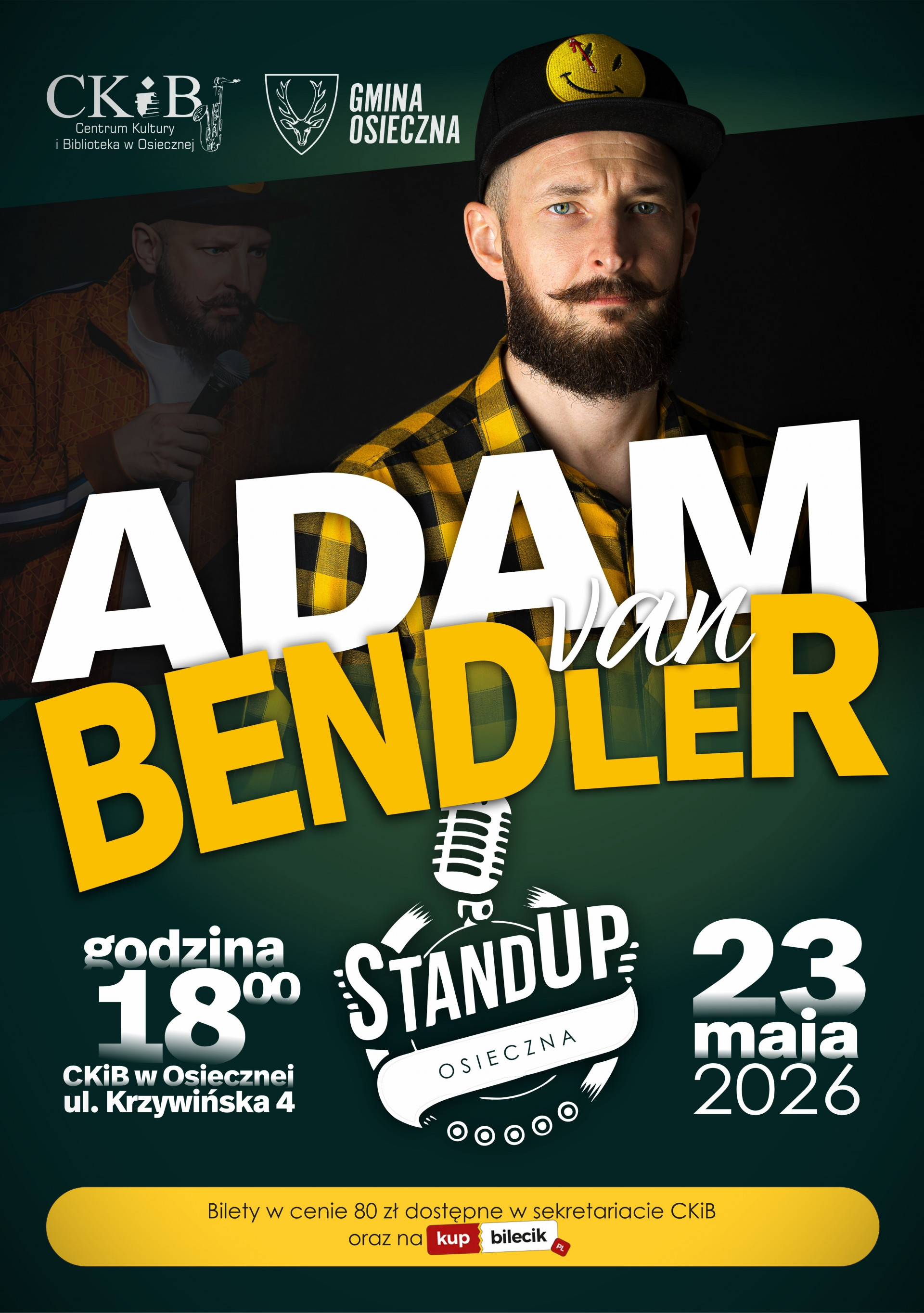 | Miejscowość: Osieczna Miejsce: Centrum Kultury i Biblioteka w Osiecznej Data rozpoczęcia: 23.05.2026 18:00:00 Data zakończenia: 23.05.2026 20:00:00 Organizator: Centrum Kultury i Biblioteka w Osiecznej Opis wydarzenia: Zapraszamy na wyjątkowy wieczór stand-upu! Już 23 maja! To idealna okazja, aby jako jedni z pierwszych usłyszeć świeże, niepublikowane wcześniej żarty, pełne charakterystycznego dla komika absurdalnego humoru, błyskotliwych obserwacji i bezkompromisowych puent. Co Cię czeka? - premierowe materiały - wieczór pełen śmiechu i pozytywnej energii - stand-up na najwyższym poziomie Nie przegap! Liczba miejsc ograniczona - zarezerwuj bilety już teraz! |