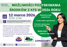 | Bezpłatne szkolenie "Możliwości pozyskiwania środków z Krajowego Funduszu Szkoleniowego na kształcenie ustawiczne w 2026 roku" |