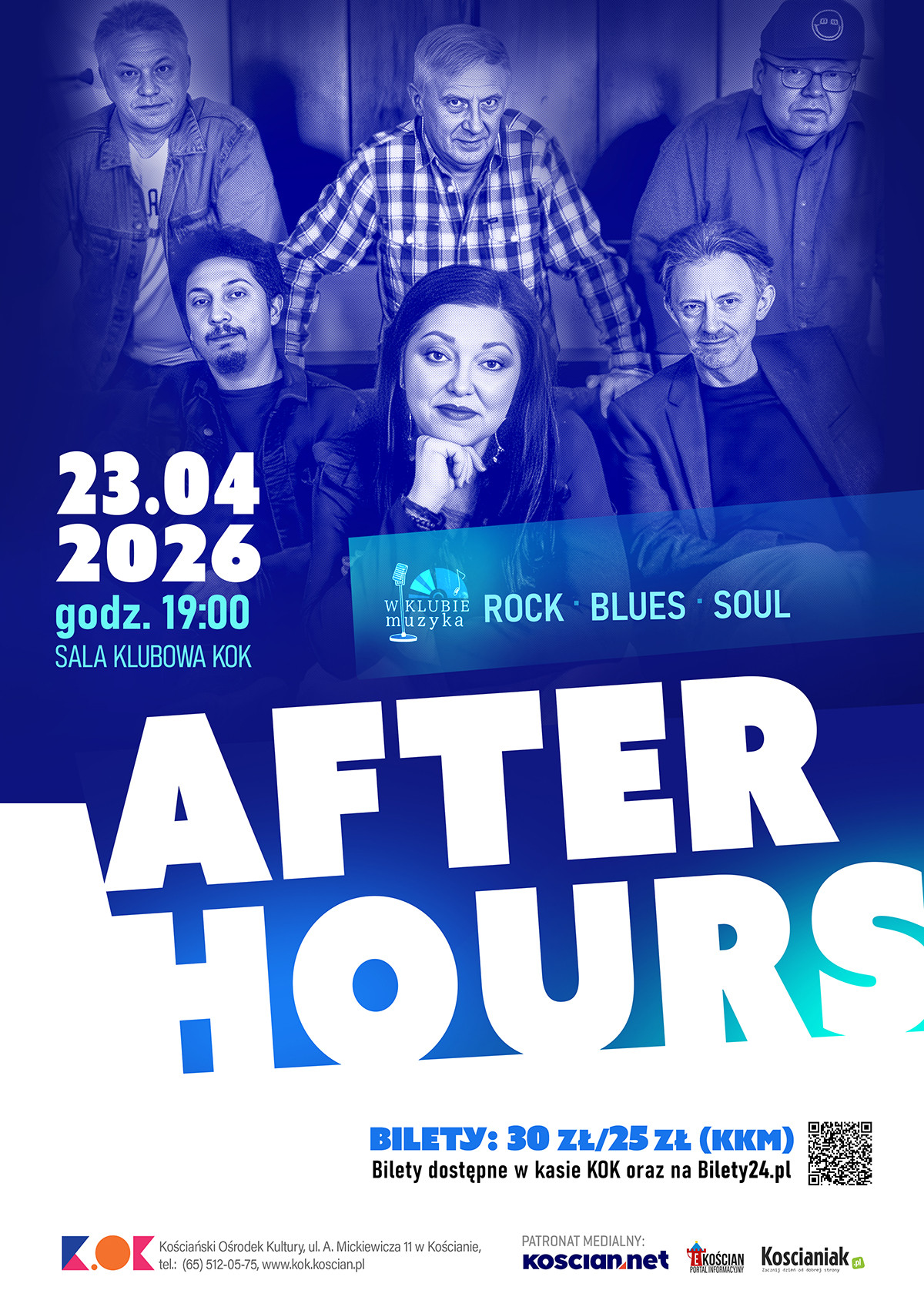 | Miejscowość: Kościan Miejsce: Kościański Ośrodek Kultury Data rozpoczęcia: 23.04.2026 19:00:00 Data zakończenia: 23.04.2026 00:00:00 Organizator: Kościański Ośrodek Kultury Opis wydarzenia: Wiosna dopiero się rozkręca, a my już podkręcamy temperaturę! AFTER HOURS to wieczór, w którym muzyka oddycha, zmienia się i żyje razem z publicznością – bez schematów, za to z ogromną dawką emocji. Na scenie spotkają się dźwięki inspirowane klasyką B.B. King i Tadeusz Nalepa z nowoczesnym soulowym vibe’em w klimacie Black Pumas i Teddy Swims. Będzie spokojnie i hipnotyzująco, a za chwilę intensywnie i z energią, która nie pozwoli ustać w miejscu. To idealny plan na wieczór – dobra muzyka, prawdziwe granie i atmosfera, której nie da się podrobić. Zabierz znajomych i wpadnij – reszta wydarzy się sama! link do biletów: https://www.bilety24.pl/kup-bilet-na-1118-w-klubie-muzyka-rock-blues-soul-after-hours-150592?id=894121 |