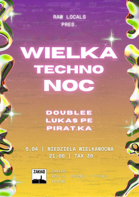 | Miejscowość: LESZNO Miejsce: ZAKŁAD, róg ulic Bocznej i Tylnej Data rozpoczęcia: 05.04.2026 21:00:00 Data zakończenia: 06.04.2026 02:00:00 Organizator: PIRAT.KA Opis wydarzenia: RAW LOCALS pres. WIELKA TECHNO NOC Święta, święta i… techno! Pierwsza edycja pokazała jedno — w Lesznie wciąż jest ogromny głód dobrych elektronicznych brzmień i wspólnego parkietu. Dlatego wracamy z drugą odsłoną. W Niedzielę Wielkanocną spotykamy się ponownie, żeby razem potańczyć podczas imprezy WIELKA TECHNO NOC. Za wydarzeniem stoi Raw Locals — ekipa lokalnych DJ-ów, którzy łączą siły, żeby rozruszać miasto i stworzyć przestrzeń dla dobrej muzyki oraz ludzi, którzy czują ten klimat. lokalni DJ-e techno / hypnotic / groove Niedziela Wielkanocna Do zobaczenia na parkiecie — WIELKA (TECHNO) NOC Zagrają: PIRAT.KA – Karolina jako nastolatka grała trance’owe sety w legendarnym Ekwador oraz leszczyńskim Relaks. Muzyką wypełniała też mury 4 LO, odpalając gramofony na przerwach. PIRAT.KA to miłośniczka sonarowych brzmień i pulsującego groove’u, który wprowadza do setów odczuwalną dawkę mroku. DOUBLEE – Daniel od dawna związany jest z lokalną sceną. Muzyczna podróż od deep przez minimal i progressive, dziś w mroczniejszej, hipnotycznej odsłonie. Grywał i bywał w kultowych, nieistniejących już miejscach jak Dwa Światy, Ranczo Karina czy Pub 007. LUKAS PE – Łukasz od lat oddany scenie, najpierw pod sceną, dziś za konsoletą. Najbliżej mu do surowego techno z mocną stopą. Leszczyński Fort47 i Panteon były dla niego ulubionym dancefloorem, miejscem muzycznych odkryć i inspiracji, które dziś przekłada na własne selekcje. |