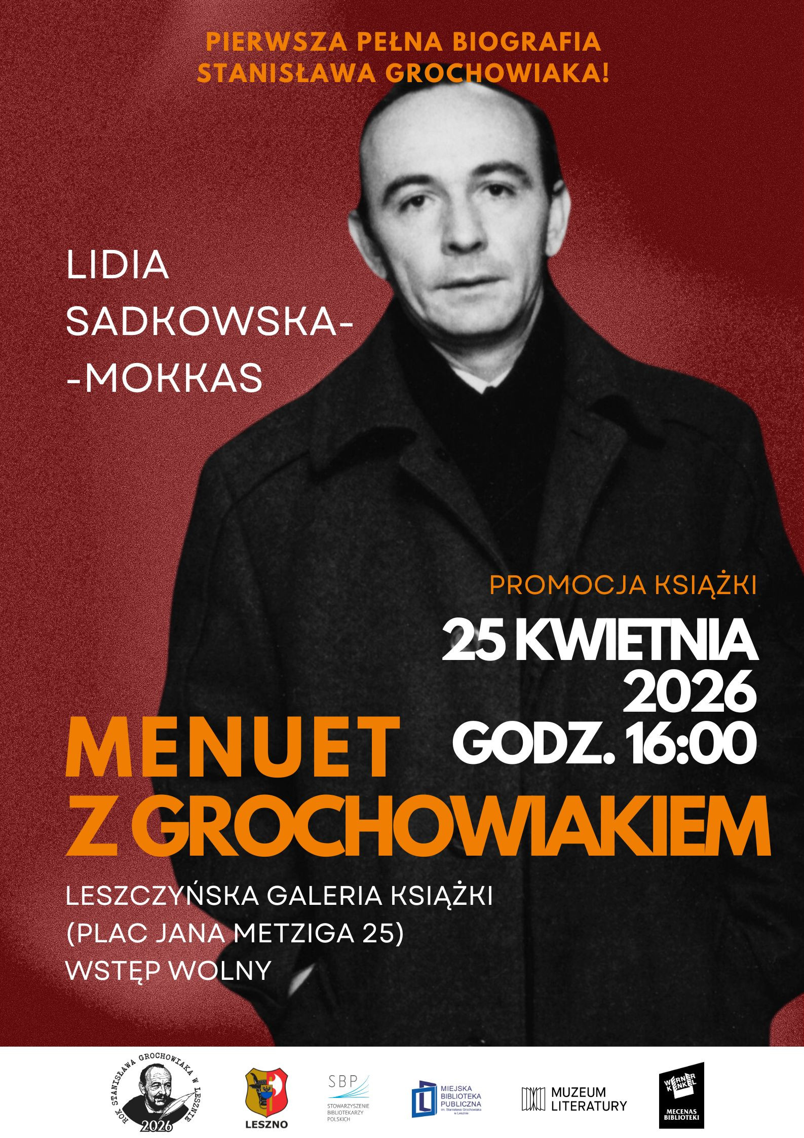 | Miejscowość: Leszno Miejsce: Leszczyńska Galeria Książki Data rozpoczęcia: 25.04.2026 16:00:00 Data zakończenia: 25.04.2026 18:00:00 Organizator: MBP Leszno Opis wydarzenia: Z dumą zapowiadamy wydarzenie, które ma dla nas znaczenie szczególne. Po raz pierwszy w ręce czytelników trafia pełna, bogato udokumentowana i ilustrowana biografia Stanisława Grochowiaka - jednego z najważniejszych twórców polskiej literatury powojennej. 25 kwietnia 2026 roku o 16:00 w Leszczyńskiej Galerii Książki w Lesznie odbędzie się promocja książki „Menuet z Grochowiakiem” autorstwa Lidii Sadkowskiej-Mokkas. To publikacja, która nie tylko porządkuje wiedzę o życiu i twórczości poety, ale przede wszystkim przywraca jego postać w pełnym, wielowymiarowym świetle - bez uproszczeń i bez przemilczeń. Wstęp wolny. Podczas wydarzenia zaplanowano spotkanie autorskie, które będzie okazją do rozmowy o kulisach powstawania książki, pracy nad materiałami źródłowymi oraz o samym Grochowiaku - artyście złożonym, niejednoznacznym i wciąż inspirującym. Uczestnicy będą mogli zadać pytania, a także zakupić publikację w cenie 89 zł. Wieczór nie zakończy się na literaturze. Po części oficjalnej odbędzie się koncert jazzowy „Jazz naGrochu” - muzyczne dopełnienie spotkania, nawiązujące do wrażliwości i artystycznego ducha bohatera książki. „Menuet z Grochowiakiem” to pierwsza tak kompleksowa biografia poety - efekt wieloletniej pracy, badań i współpracy, która narodziła się w Lesznie. To również symboliczne domknięcie obchodów Roku Stanisława Grochowiaka i ważny krok w przywracaniu należnego miejsca jednemu z najciekawszych głosów polskiej literatury XX wieku. |