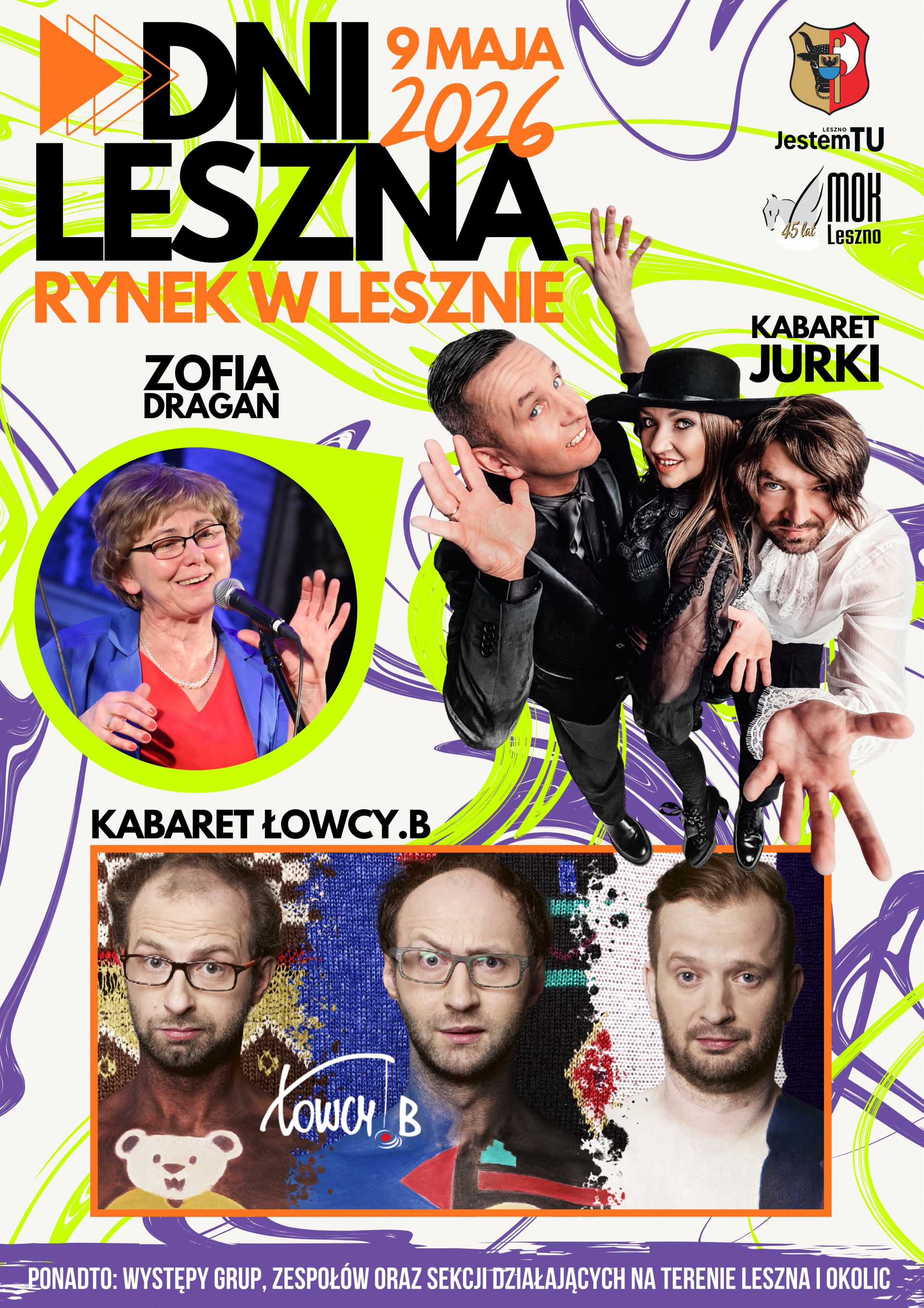 | DNI LESZNA 2026 || KABARETY I KONCERTY NA RYNKU || KABARET JURKI || ŁOWCY.B || ZOFIA DRAGAN || 9 MAJA (SOBOTA) |