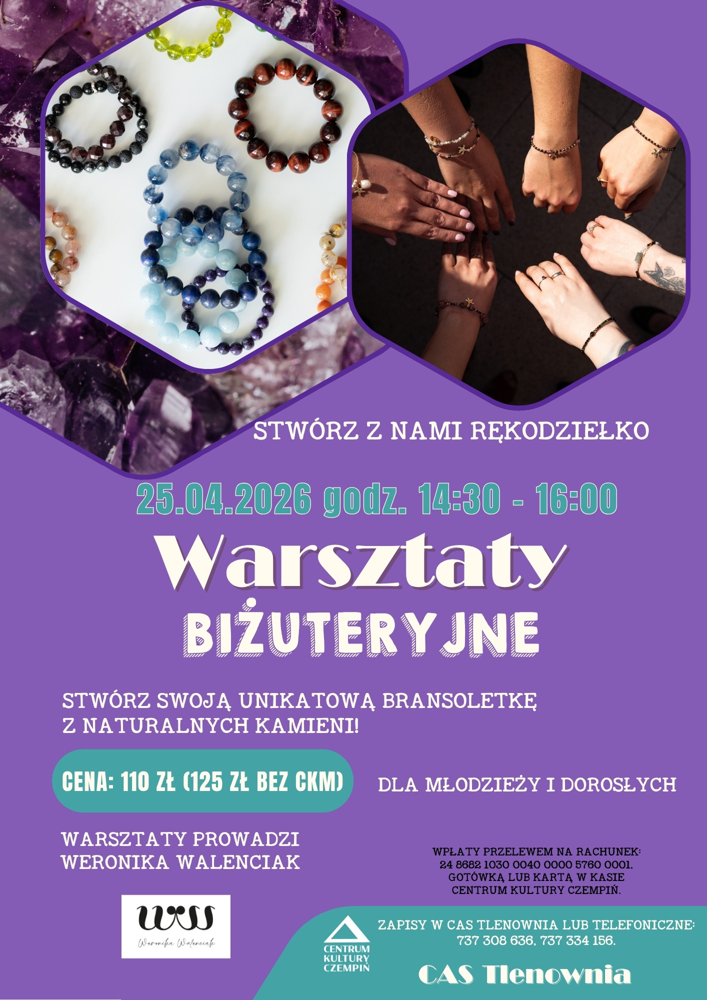 Pod okiem prowadzącej, Weroniki Walenciak, poznasz podstawy tworzenia biżuterii oraz właściwości kamieni naturalnych - dowiesz się jakie sekrety skrywają kamienie szlachetne. To idealna okazja, by stworzyć coś pięknego dla siebie lub bliskiej osoby i spędzić czas w kreatywnej, wiosennej atmosferze.