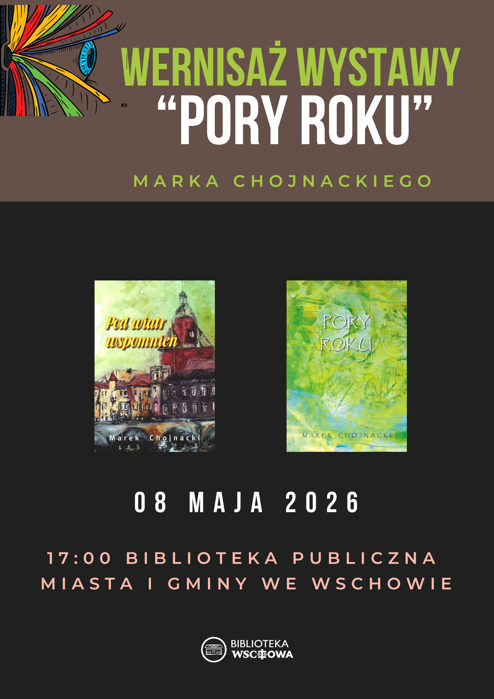 | Miejscowość: Wschowa Miejsce: Biblioteka Publiczna Miasta i Gminy we Wschowie Data rozpoczęcia: 08.05.2026 17:00:00 Data zakończenia: 08.05.2026 19:00:00 Organizator: Biblioteka Publiczna Miasta i Gminy we Wschowie Opis wydarzenia: 8 maja 2026 roku rozpoczyna się 23. Ogólnopolski Tydzień Bibliotek. Z tej okazji w Bibliotece Publicznej Miasta i Gminy we Wschowie odbędzie się wyjątkowo inspirujące wydarzenie – wernisaż wystawy artystycznej „Pory roku”. Tego dnia w bibliotece stanie ekspozycja dzieł Marka Chojnackiego, w tym malarstwa i płaskorzeźby. Autor, jak sam o sobie mówi, przez ostatnie lata zajmował się szeroko rozumianą pracą artystyczną, a po wielu „wiosnach” powrócił do „rzemiosła” pisarskiego. Podczas spotkania przedstawione zostaną również dwie książki pana Chojnackiego – „Pory roku”, za sprawą której czytelnicy przeniosą się do dziewiętnastowiecznej małej miejscowości, gdzie urokliwe kamieniczki skrywają tajemnice przemijającego czasu, a lokalni mieszkańcy wiodą spokojne życie, oraz „Pod wiatr wspomnień”, będącą uzupełnieniem ulotnych chwil szczęścia małomiasteczkowej społeczności. Wernisaż rozpocznie się o godzinie 17:00 i będzie idealną okazją nie tylko do podziwiania prezentowanych dzieł sztuki, ale też do rozmowy o genezie i ostatecznym wyrazie twórczości Marka Chojnackiego, bowiem wszyscy odwiedzający wystawę będą mogli zadać autorowi nurtujące ich pytania. Dobrą wiadomością dla tych, którym nie uda się dotrzeć 8 maja do wschowskiej książnicy, jest fakt, że wystawa będzie prezentowana w bibliotecznych wnętrzach aż do końca maja. Serdecznie zapraszamy na spotkanie ze sztuką! |
