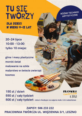 Opis wydarzenia: Tu się tworzy – kameralne, spokojne i pełne twórczej przygody warsztaty dla dzieci w wieku 9–12 lat.