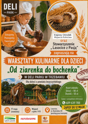 | Miejscowość: Trzebaw Miejsce: DeliPark Data rozpoczęcia: 17.05.2026 09:15:00 Data zakończenia: 17.05.2026 15:00:00 Organizator: Stowarzyszenie "Lasocice z Pasją" Opis wydarzenia: TEN PLAKAT JEST WŁAŚCIWY-POPRZEDNI ZAWIERAŁ BŁĘDY Stowarzyszenie "Lasocice z Pasją" zapraszają na wyjątkowe warsztaty „Od ziarenka do bochenka”! To będzie piękny dzień pełen radości, wspólnego czasu i pachnącej przygody z pieczeniem . Dzieci poznają drogę, jaką przechodzi ziarno, zanim zamieni się w chrupiący bochenek, a przy okazji będą mogły tworzyć, poznawać i świetnie się bawić. Takie chwile zostają w pamięci na długo bo najlepsza nauka to ta, której można dotknąć, posmakować i przeżyć razem Serdecznie zapraszamy dzieci z powiatu leszczyńskiego wraz z opiekunami. Będzie smacznie, ciekawie i naprawdę wyjątkowo Zapisy trwają więc warto się pospieszyć! |