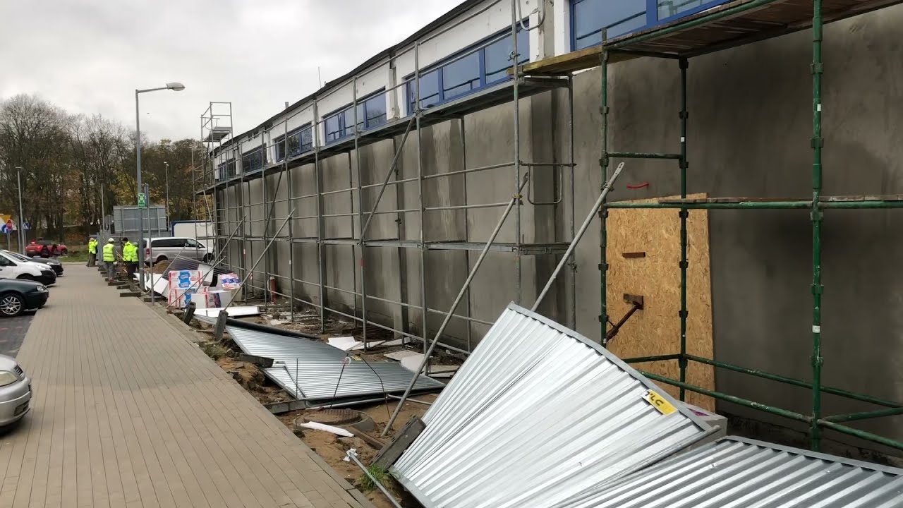 Ogrodzenie runęło na fiata, forda oraz volkswagena. Samochody były zaparkowane w ciągu nowo wybudowanej drogi. Za szybą czołową pojazdów mundurowi pozostawili informację o sposobie uzyskania policy OC. Od samego rana pracownicy budowy naprawiają ogrodzenie.