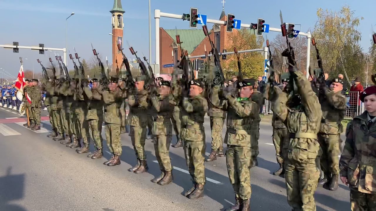 - W tych trudnych chwilach jesteśmy winni szczególny szacunek dla żołnierzy, funkcjonariuszy policji i Straży Granicznej, którzy bronią Polaków i polskiej granicy – mówił prezydent Leszna Łukasz Borowiak podczas uroczystej manifestacji z okazji Święta Niepodległości. Odbyła się ona tradycyjnie pod pomnikiem Konstytucji 3 Maja i odzyskania Niepodległości.