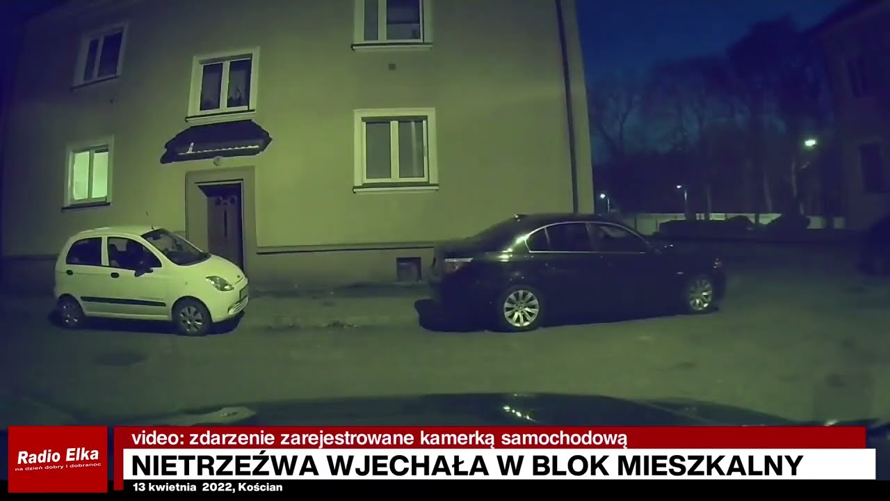 pijana. W trakcie wykonywania manewru cofania, uderzyła w zaparkowany pojazd marki BMW, a następnie z impetem w budynek mieszkalny.
