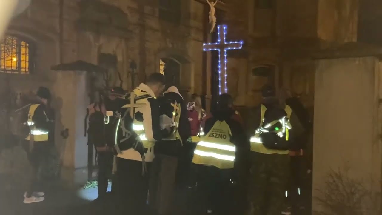 -Mimo deszczu i chłodu mamy chyba rekordową liczbę uczestników, zapisało się około 250 osób - mówi Michał Prałat, organizator EDK w Lesznie. Możliwe, że było ich jeszcze więcej, ponieważ wiele osób przyszło po prostu na wieczorną mszę w bazylice, przed którą pobierali teksty rozważań nabożeństwa, mapki oraz kamizelki i opaski odblaskowe.