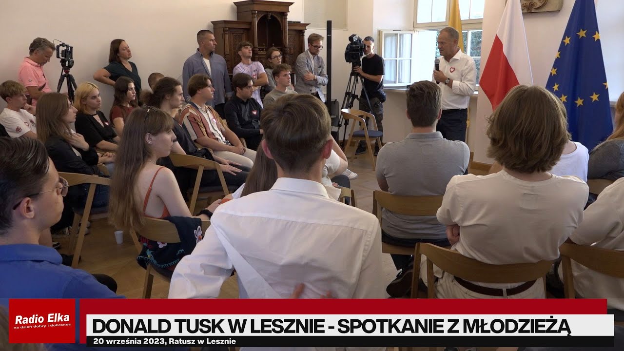 Donald Tusk swoją wizytę w Lesznie rozpoczął od wizyty w jednej z leszczyńskich firm, którą już zrelacjonowaliśmy. Po niej „Tuskobus” zajechał na Rynek, gdzie już czekało kilkaset osób. Lider Koalicji Obywatelskiej najpierw jednak wszedł do ratusza, gdzie spotkał się z kilkudziesięcioma młodymi ludźmi. Jak się dowiedzieliśmy, spotkanie to zorganizowali Młodzi Demokraci, czyli młodzieżówka Platformy Obywatelskiej, której członkowie zaprosili swoich kolegów. -Ja wiem, że jak się ma te 17 czy 19 lat, to ma się własne zdanie i trudno się słucha starszych, którzy mówią, na kogo głosować - zaczął spotkanie Tusk - ale wiem, że młodzi
