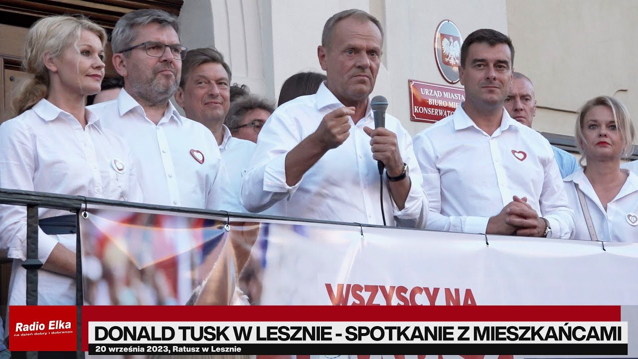 Po trwającym około pół godziny spotkaniu z młodzieżą Tusk wyszedł przed ratusz, gdzie powitała go owacja setek zwolenników: właściwie cała wschodnia cześć Rynku była pełna ludzi. -Zatkało mnie, to coś niesamowitego, już rozumiem dlaczego poseł Rusiecki mówił mi „musisz przyjechać do Leszna, dawno cię nie było, zobaczysz jak Leszno cię przywita” - powiedział na początku swojego wystąpienia. Lider KO poświęcił je przede wszystkim krytyce rządów Prawa i Sprawiedliwości i Jarosławowi Kaczyńskiemu. -Od dawna wzywam go do debaty, której unika, bo jest tchórzem, rządzi nami tchórz, wyposażony w miliardy złotych ze spółek Skarbu Państwa, służby, podsłuchy, telewizję rządową, gazety lokalne i policję, on to wszystko ma, a ja mam tylko was - mówił Tusk, zarzucając prezesowi PiS nie tylko tchórzostwo, ale i nieodpowiedzialność oraz korupcję. -Już nawet wyborcy PiS widzą, że coś tu nie gra, oni nie po to głosowali na tę partię, żeby podczas pandemii ministrowie handlowali respiratorami, podczas kryzysu migracyjnego handlowali wizami, a podczas kryzysu ukraińskiego zarabiali na zbożu, ono wszystkim handlują, własną matkę by sprzedali i wyborcy PiSu już to widzą - powiedział Donald Tusk. Zgromadzeni skwitowali te słowa skandując „złodzieje”. -Ten okrzyk pod adresem władzy się powtarzał przez dziesięciolecia, ale nigdy nie był tak prawdziwy, ale najgorsze, że oni już nawet tego nie komentują, nie zaprzeczają, patrzą nam w twarz i mówią „co nam zrobicie?” - odpowiedział przewodniczący Platformy - otóż oświadczam, że 15 października zrobimy im to, czego się najbardziej boją, pokażemy, że król jest nagi, choć ostatnią rzeczą, jaką bym chciał zobaczyć, to oni na golasa.