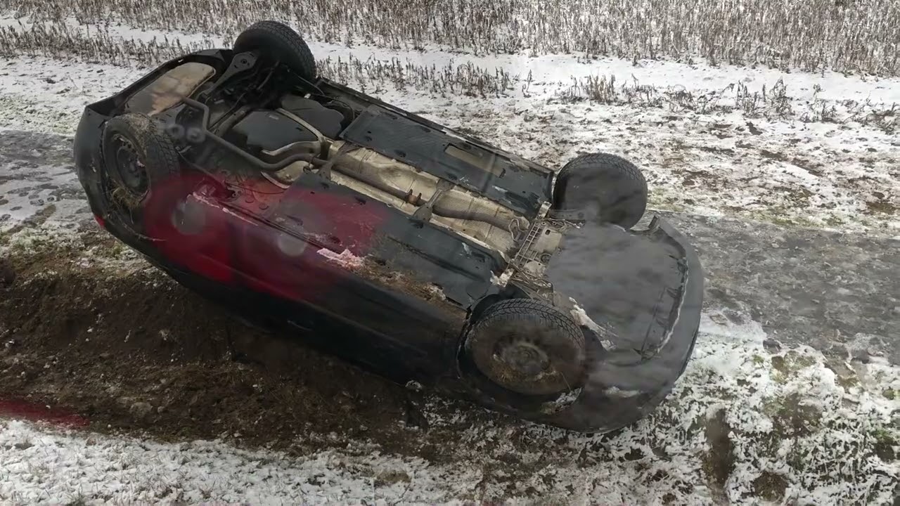 Poślizg przyczyną dachowania na obwodnicy Święciechowy