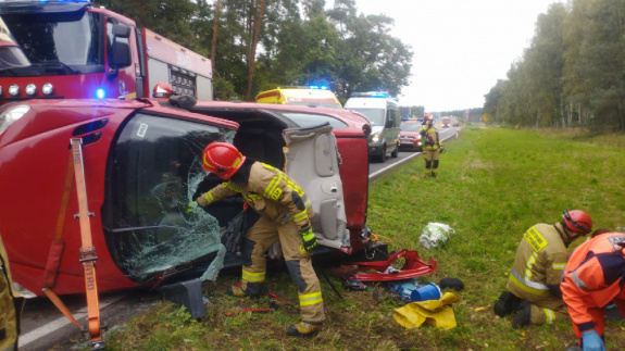 nie odniosła poważniejszych obrażeń, natomiast kierowca prawdopodobnie zostanie przewieziony do szpitala na dalsze badania. Na miejscu pracują służby - policja, straż pożarna i zespół ratownictwa medycznego. Droga w rejonie zdarzenia może być czasowo utrudniona. Przyczyny wypadku są ustalane.