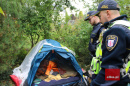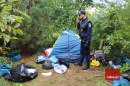 Gostyńscy strażnicy miejscy otrzymali zgłoszenie o nielegalnym koczowisku przy ulicy Górnej w Gostyniu. W krzakach, na terenie miejskich ogródków działkowych ktoś rozbił namiot i urządził miejsce noclegowe. - W trakcie