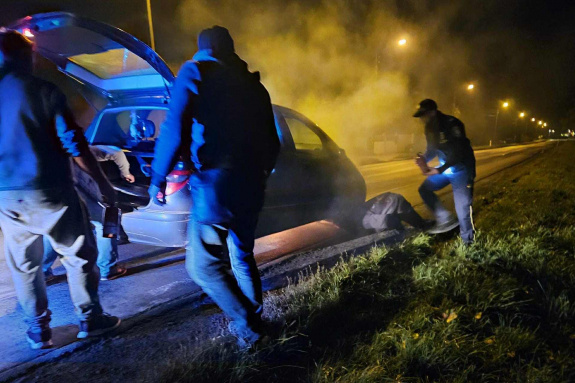 Na ulicy Poznańskiej w Gostyniu doszło do pożaru mercedesa. Ogień wydobywający się z podwozia samochodu zauważył patrol strażników miejskich. Mundurowi podjęli akcję gaśniczą i zabezpieczyli teren do czasu przyjazdu strażaków.