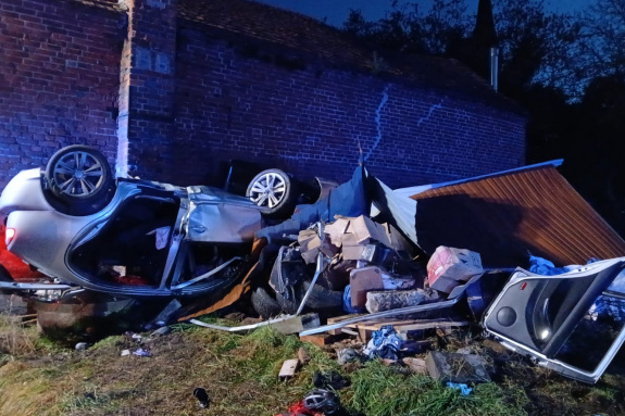 Groźny wypadek w gminie ŚmigielSamochód uderzył w budynek. Kierowca był pijany |