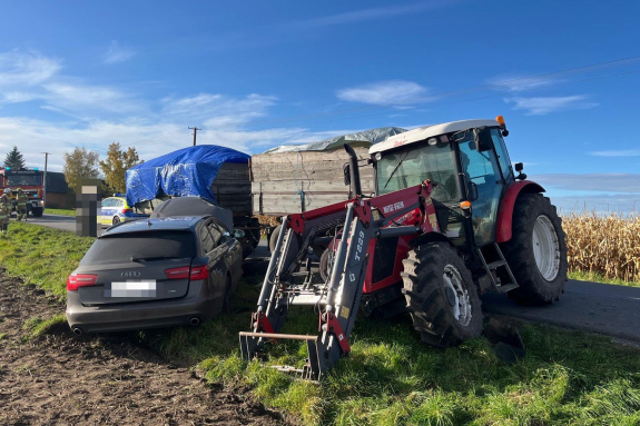 O niebezpiecznym zdarzeniu w Szkaradowie informowaliśmy już w sobotę (25.10). 42-letni kierowca audi A6 uderzył w ciągnik rolniczy z przyczepami,