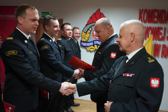 Decyzje o mianowaniu na wyższe stanowisko służbowe - starszego ratownika-kierowcy - otrzymało siedmiu strażaków: mł. ogn. Patryk Rakowski, st. sekc. Jakub Klima, st. sekc. Michał Stećko, sekc. Tomasz Kapała, sekc. Przemysław Sierpowski, sekc. Mateusz Szponik i sekc. Krystian Kosiuba.