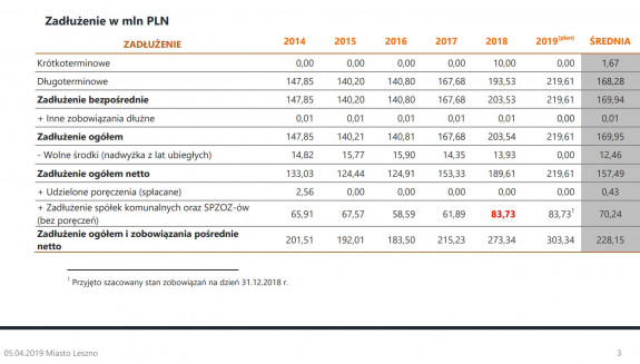 30. Dodane przez do kom. 17, w dniu - 14-11-2025 21:02 92 Ja mam trochę pojęcia o ekonomii i chętnie podejmę bardziej merytoryczną dyskusję w tym zakresie. Zacznę od tego, że Prezydent, gdyby chciał przedstawić rzetelnie zadłużenie miasta, to powinien wyraźnie zaznaczyć, czy mówi tylko o zadłużeniu bezpośrednim, czy także ujmuje je wraz z pośrednim? Proszę spojrzeć na załączoną tabelkę z kwietnia 2019 roku. Jest tam wyraźnie napisane, że zadłużenie ogółem i zobowiązania pośrednie netto już 6 lat temu miały przekroczyć poziom 300 mln złotych. Więc skoro od tego czasu znacząco urosły, to należałoby podać obie te wartości.