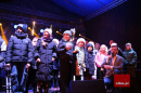 Dyżurny reporter: Mieszkańców, którzy przybyli na Świąteczny Jarmark przywitał prezydent miasta Grzegorz Rusiecki. - Proszę państwa witam was bardzo serdecznie na leszczyńskim jarmarku. Bardzo się cieszę, że jest was tak wielu, bardzo się cieszę, że ten jarmark, który w zeszłym 667 70 70 60 roku rozpoczęliśmy dzisiaj możemy go rozszerzyć o 3 dni. Bogata oferta imprez i dzisiaj i jutro i w niedzielę - powiedział prezydent Rusiecki, który dodał również, że dziękuję za organizację pracownikom wydziału promocji i rozwoju oraz leszczyńskim radnym. Prezydent zaprosił na scenę chętne dzieci do wspólnego odliczania, a punktualnie o 17.30 zapalono lampki i iluminacje na świątecznym drzewku. Podczas leszczyńskiego jarmarku na stoiskach zakupowych można było zaopatrzyć się m.in. w ozdoby świąteczne - bombki, piernikowe chatki, witraże, stroiki, maskotki, czy choinkowe lampki, a także tradycyjne wędliny, grzańce i miody. Przy choince i świątecznie przyozdobionym aucie można było sobie zrobić pamiątkową fotografię, a chętni mogli skorzystać z okazji i wejść na balowego kosza. Ciekawą atrakcją był występ zespołu Big Bike Orchestra, który nie odbywał się jednak na scenie, a na 6 osobowym rowerze, którym muzycy jeździli wokół rynku grając i śpiewając.