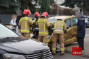 Seniorka nie ustąpiła pierwszeństwa kierowcy volkswagena jadącemu od al. Konstytucji 3 Maja, co doprowadziło do zderzenia. Najbardziej ucierpiał matiz, w którym uszkodzony został lewy bok pojazdu.