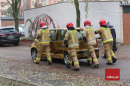 Działania zabezpieczały dwa zastępy PSP z Leszna. Strażacy przepchnęli uszkodzony samochód z powrotem na parking. Kierująca matizem została ukarana mandatem.