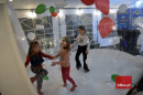 świąteczna kolejka, za którą maszerowały Mikołaj, Bałwanek i Renifer, a także bajkowe postaci i orkiestra.